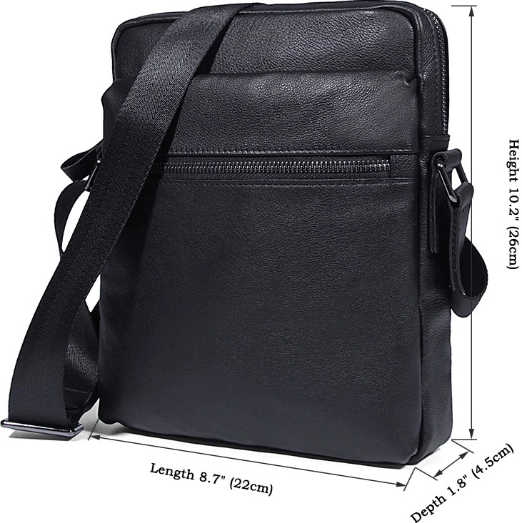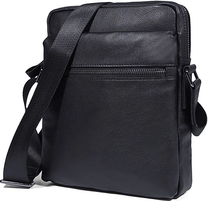Оригинальная сумка из прочной качественной телячьей кожи. Сумка имеет средние размеры, и помещает все необходимое для мужчины на каждый день. В ней найдется место телефону, планшету, кошельку, зарядкам и другим необходимым вещам. Особенностью данной модели есть слот для наушников, что дает возможность слушать музыку, не вынимая плеер или телефон с сумки. Черный цвет кожи и текстиля в этом изделии успешно оттеняется металлическими элементами цвета темного серебра.
