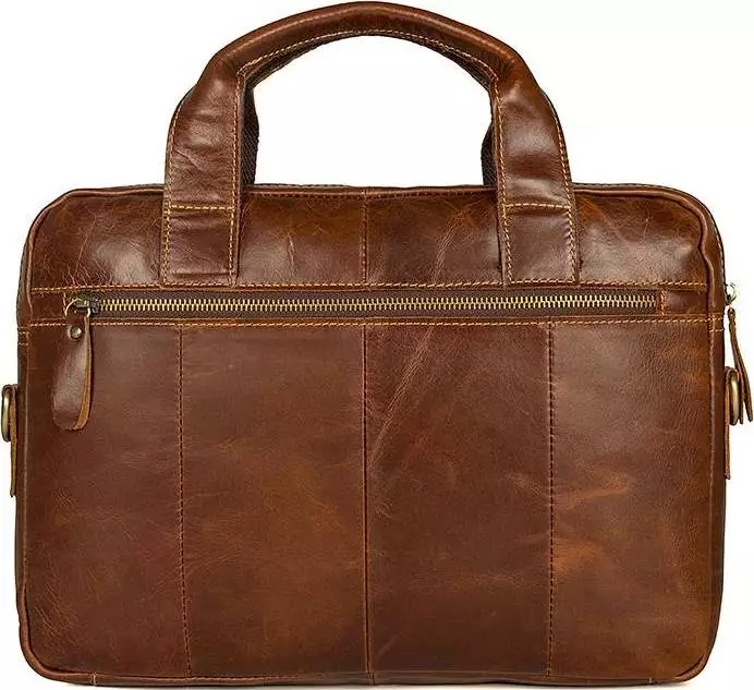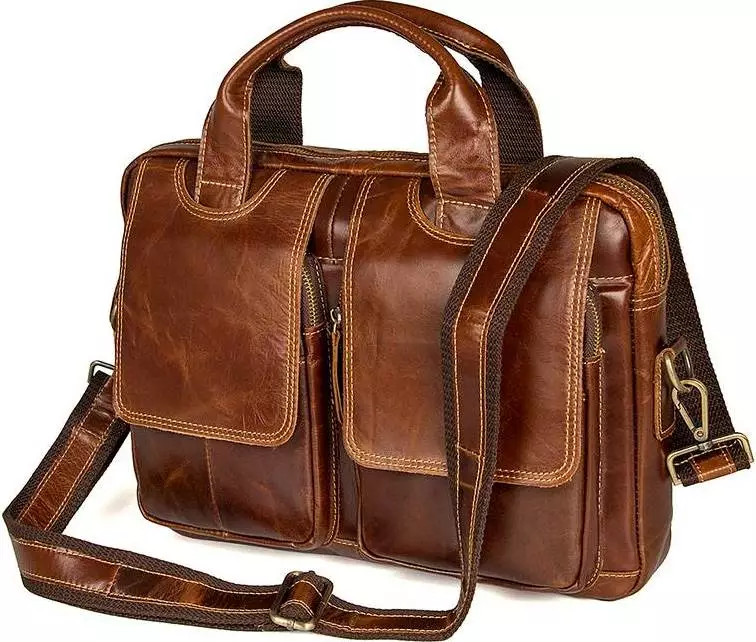 Многофункциональная мужская кожаная сумка коричневого цвета. Цвет фурнитуры: латунь. Подкладка изделия выполнена из прочного текстильного материала приятного на ощупь .Аксессуар упакован в текстильный пылезащитный чехол белого цвета.