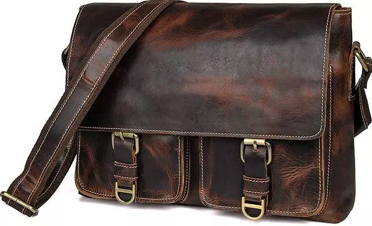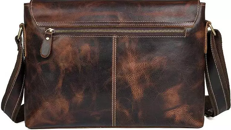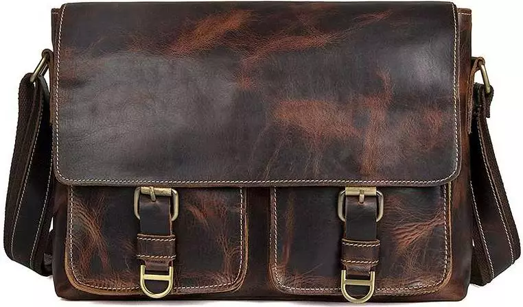 Кожаная мужская сумка из натуральной кожи в винтажном стиле. Цвет фурнитуры: латунь. Носиться данная модель через плечо при помощи регулируемого плечевого ремня. На задней внешней стороне расположен карман на молнии. Сумка закрывается клапаном на двух магнитах и молнией. Под клапаном расположены два накладных кармана. Аксессуар поставляется в текстильном пылезащитном чехле белого цвета. Подкладка выполнена из прочного текстильного материала коричневого цвета.