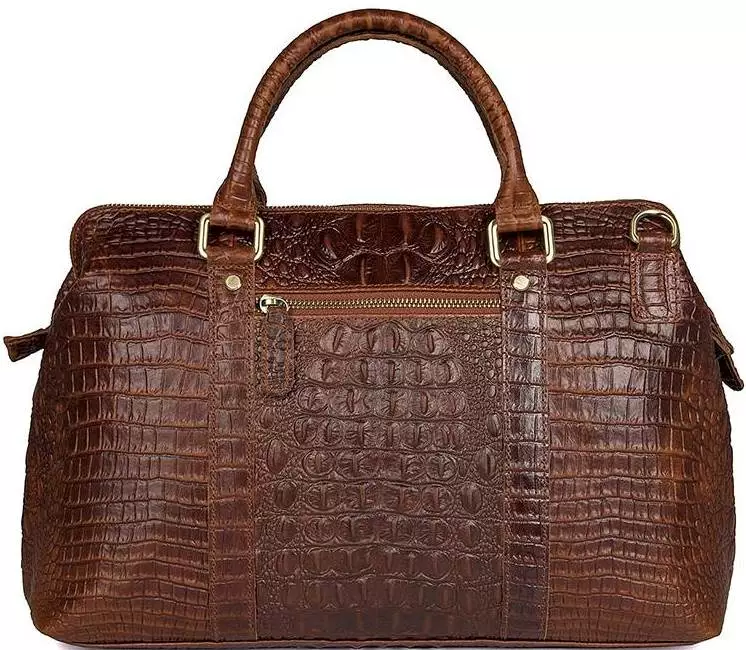 Вместительная сумка из натуральной кожи с фактурой под крокодила,