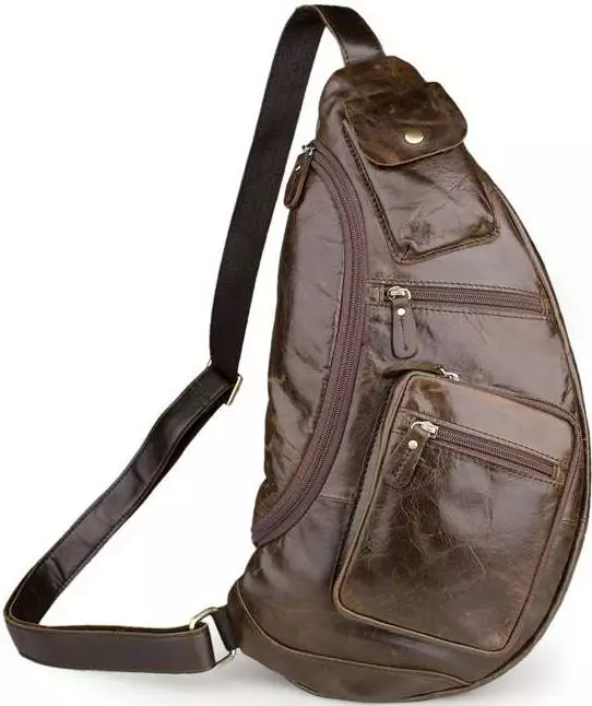 Оригинальная кожаная сумка-рюкзак коричневого цвета, которую можно в ровной степени, как мужчинам, так и женщинам. Цвет фурнитуры: латунь. На лицевой стороне расположены четыре кармана разных размеров: три из них на молниях, один на кнопке. На задней внешней стороне данной модели находится один вертикальный карман на молнии. Аксессуар имеет одно основное отделение на молнии, в котором находится один скрытый карман на змейке. Подкладка выполнена из прочного текстильного материала коричневого цвета. Аксессуар поставляется в текстильном пылезащитном чехле белого цвета.