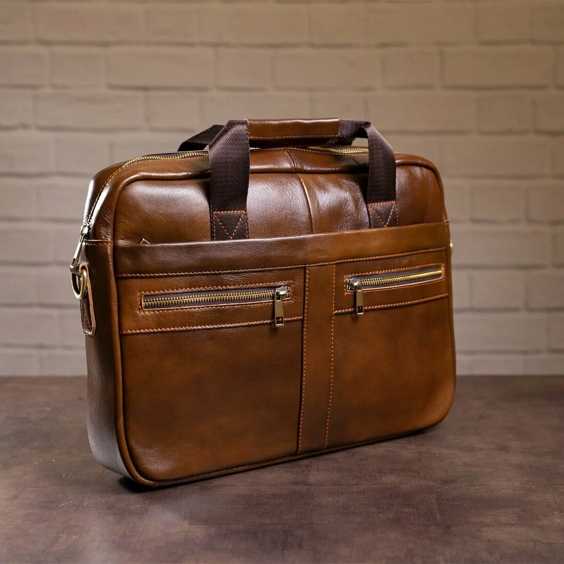 выполнен из натуральной зернистой кожи коричневого цвета. На