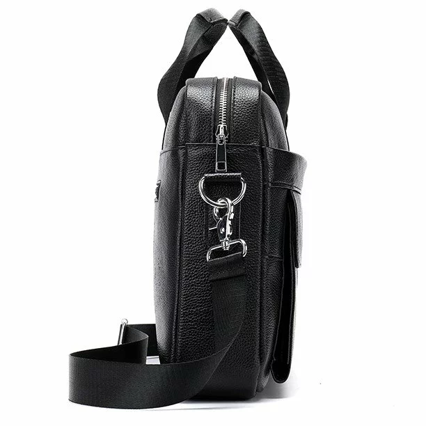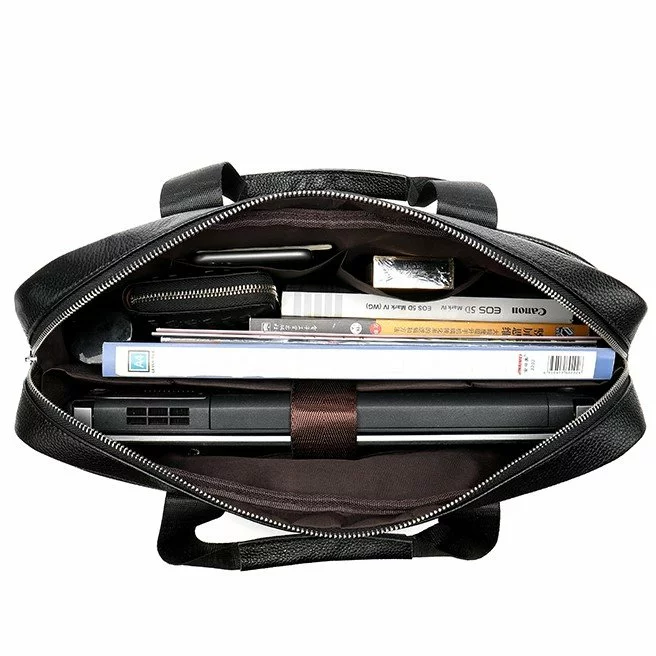 Популярная черная сумка под ноутбук. Ноутбук 15.6 дюймов в сумку легко помещается. Выполнена из натуральной кожи в классическом стиле. Ручки на сумке текстильные с кожаными вставками. Для носки на плече есть текстильный ремешок. Сумка прекрасно подойдет для работы и деловых встреч. А также, вы можете просто носить в ней все необходимое. Объемы сумки адаптированы под папки с бумагами. Фурнитура в сумке серебристого цвета. Изготовлена из качественного металла. Модель упакована в пылезащитный чехол. Может быть идеальным подарком для близкого человека.