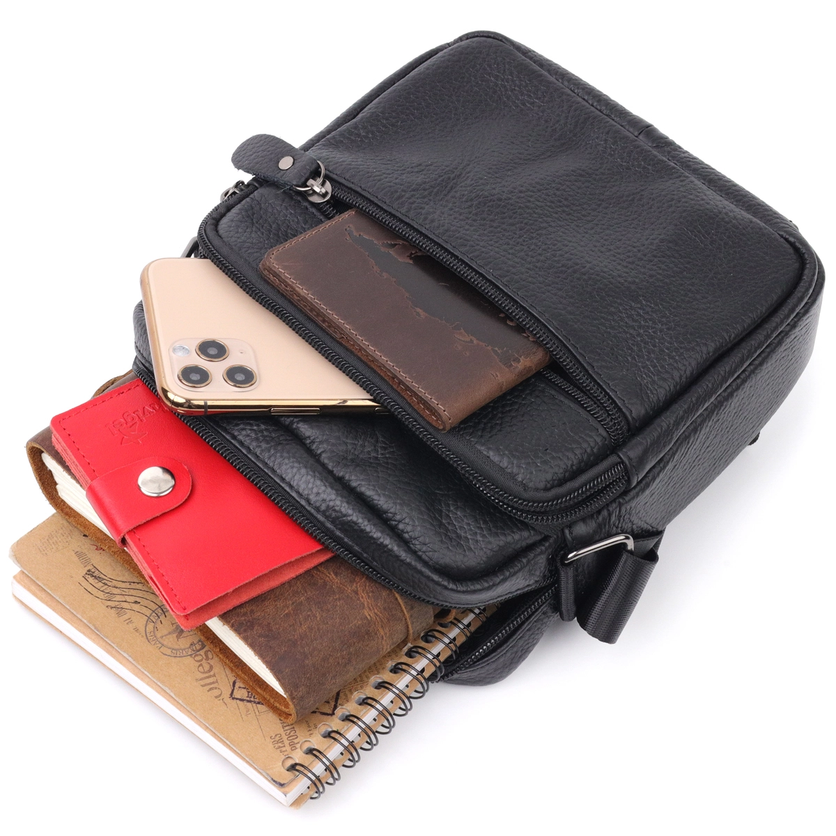 Удобная мужская сумка компактного размера из натуральной кожи. В
