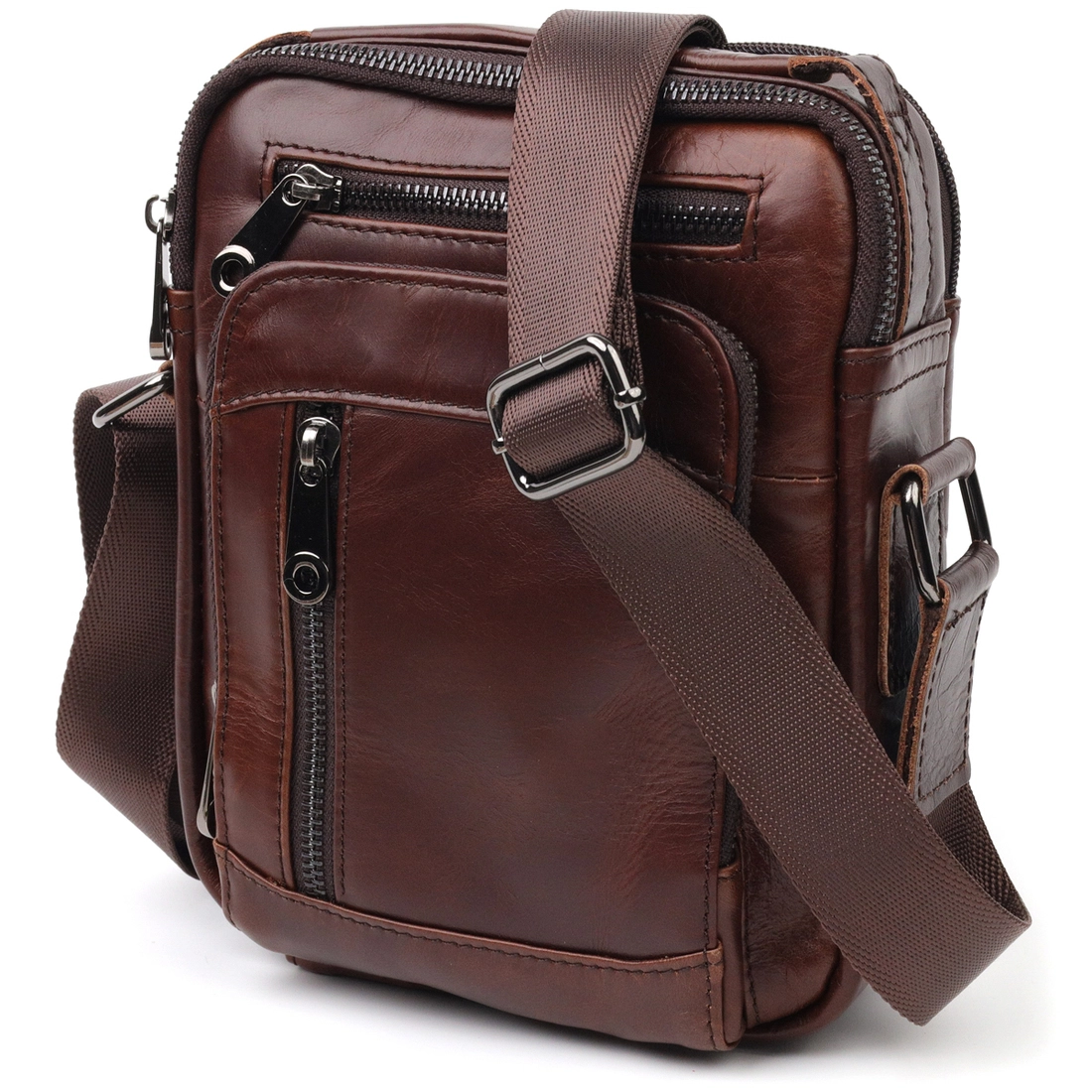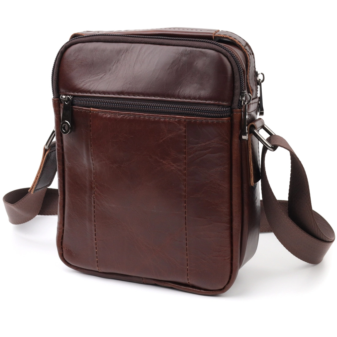 Практичная мужская сумка компактного размера из натуральной кожи. В сумку с легкостью поместятся все самые необходимые вещи. С такой сумкой будет удобно ходить на работу или встречи. Дополнено изделие качественной фурнитурой. Сумка станет прекрасным подарком для близкого человека.