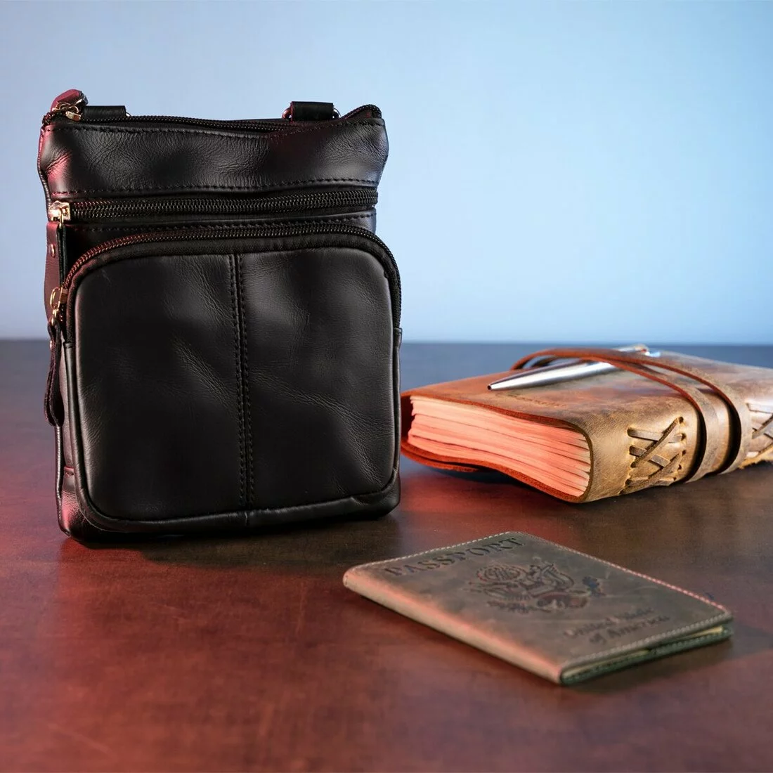 Компактная мужская кожаная сумка для портмоне и документов. Отлично подойдет автомобилистам. Сумка закрывается на молнию. Подкладка выполнена из прочного текстильного материалла. Внутри: потайное отделение на молнии и 2 накладных кармана для мобильных телефонов.