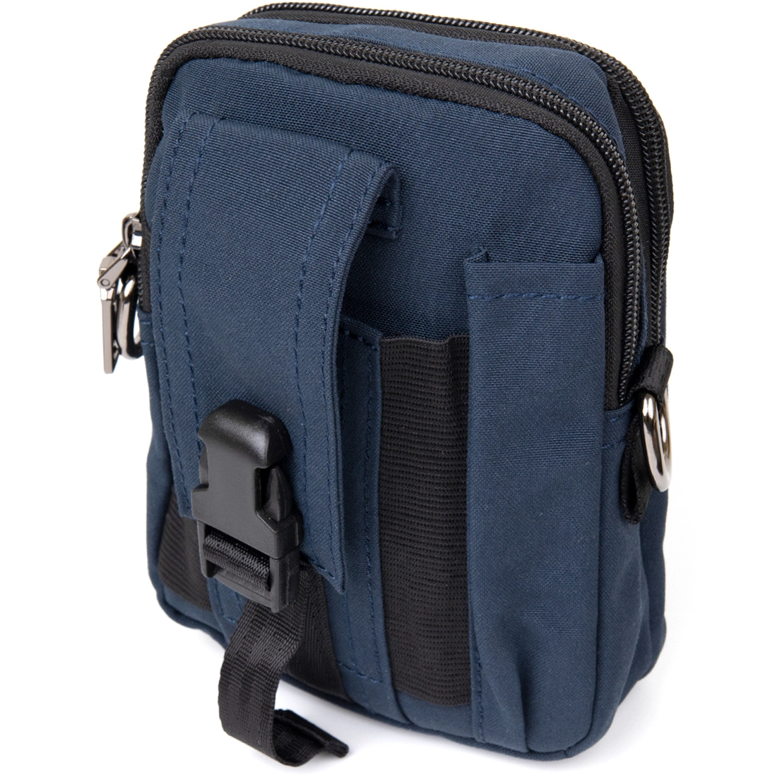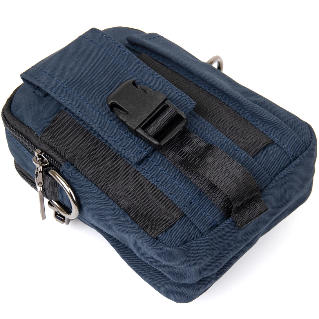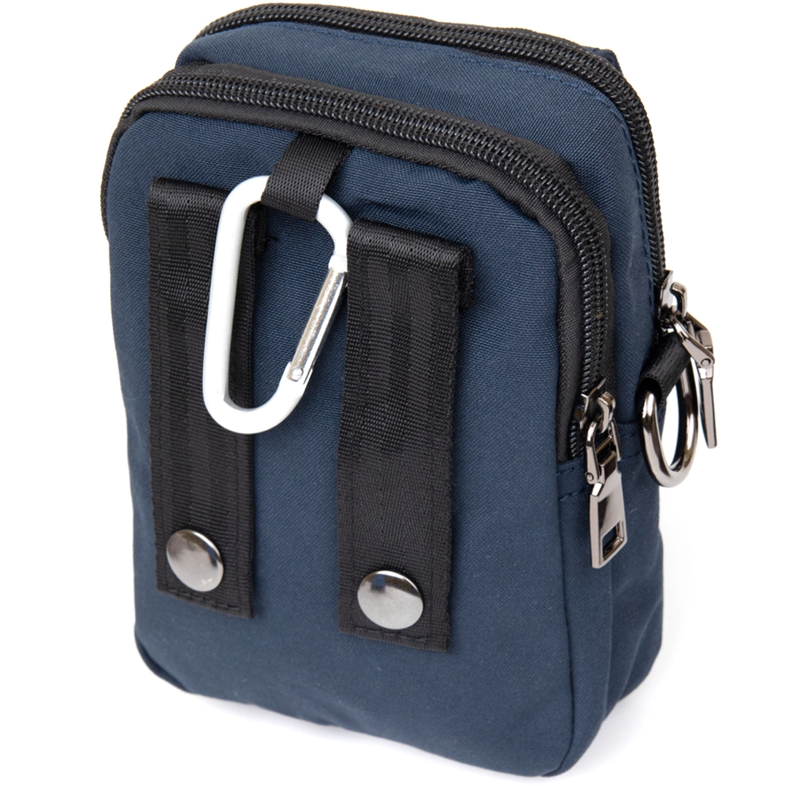 лямки ремня с помощью карабина. Маленькая текстильная сумка -