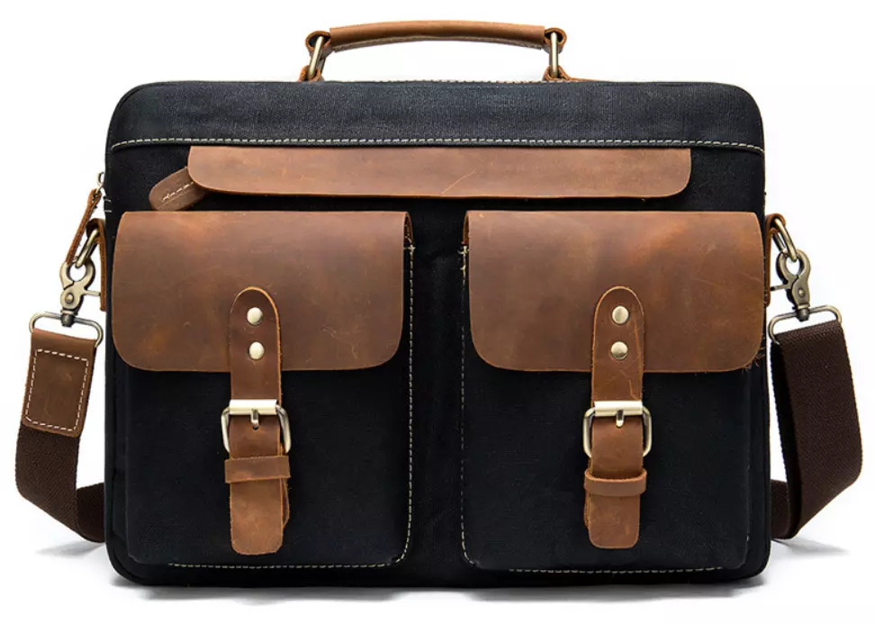 Деловая текстильная сумка со вставками натуральной кожи для мужчин. В сумку легко помещается ноутбук и папки с документами. Идеальный выбор для самых занятых и деловых мужчин. Модель идеально держит форму. По краям аксессуар прошит светлой нитью. Внутри сумки крепкая текстильная подкладка коричневого цвета. Оригинальный дизайн сумки не оставят вас незамеченным. Вы будете приятно удивлены, тем как сумка долго будет носиться. Может быть прекрасным вариантом для подарка любому мужчине.