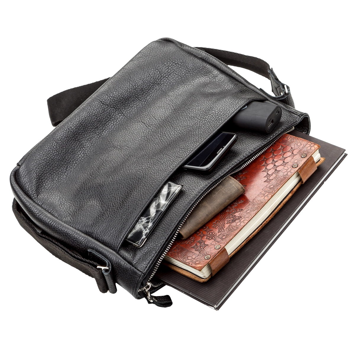 Замечательная сумка в деловом стиле из качественной натуральной кожи. Сумка имеет просторное внутреннее отделение, в котором можно разместить документы формата А4 и даже небольшой ноутбук. Прочный текстильный ремень регулируется по длине.