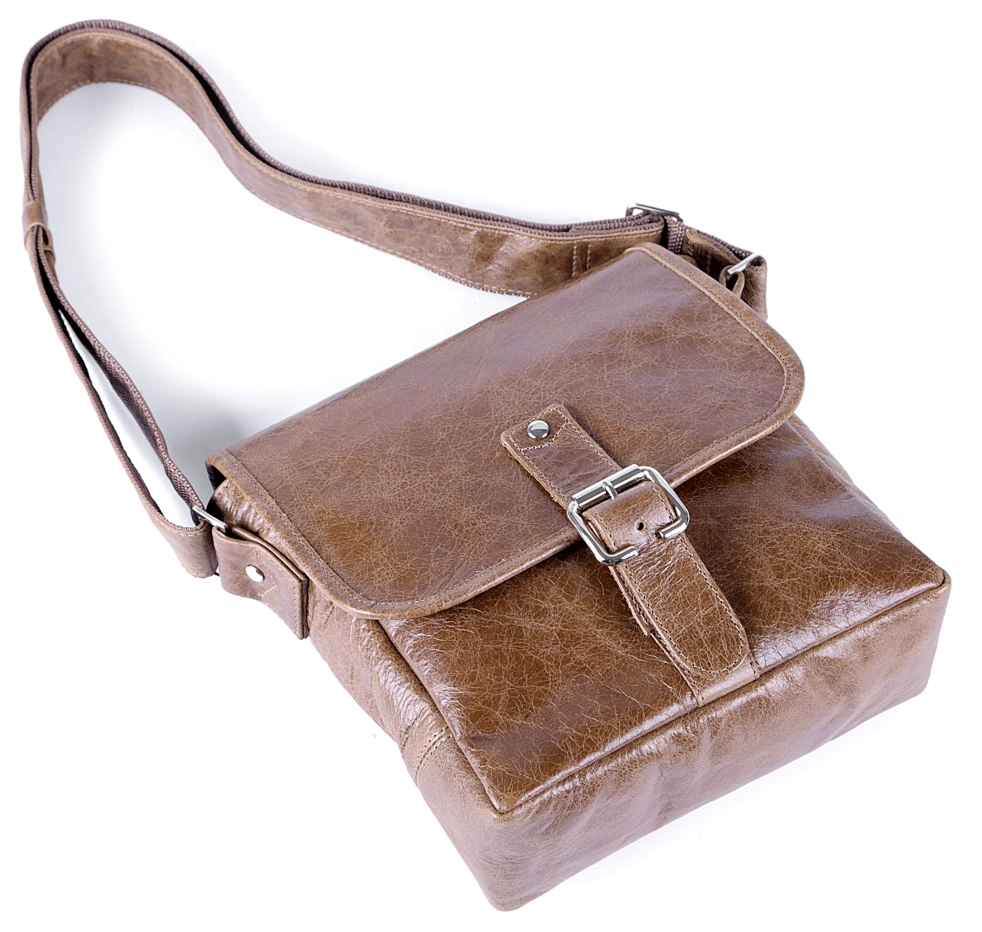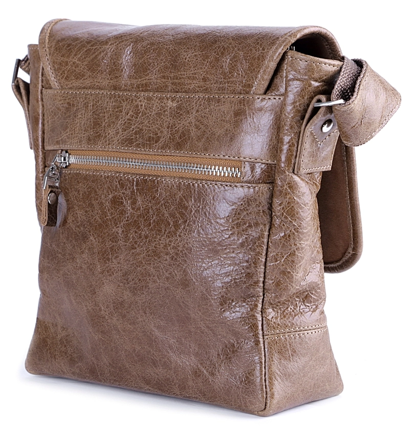 Высококачественная мужская сумка из натуральной винтажной кожи. Цвет фурнитуры: серебро. Сумка закрывается при помощи клапана на магнитной кнопке и металлической молнии. Под клапаном расположен накладной карман. На задней внешней стороне аксессуара находится небольшое отделение на молнии. Сумка носиться через плечо при помощи регулируемого плечевого ремня. Подкладка выполнена из прочного текстильного материала.