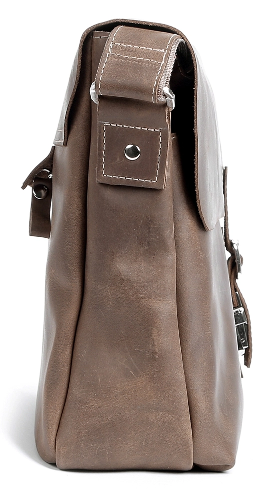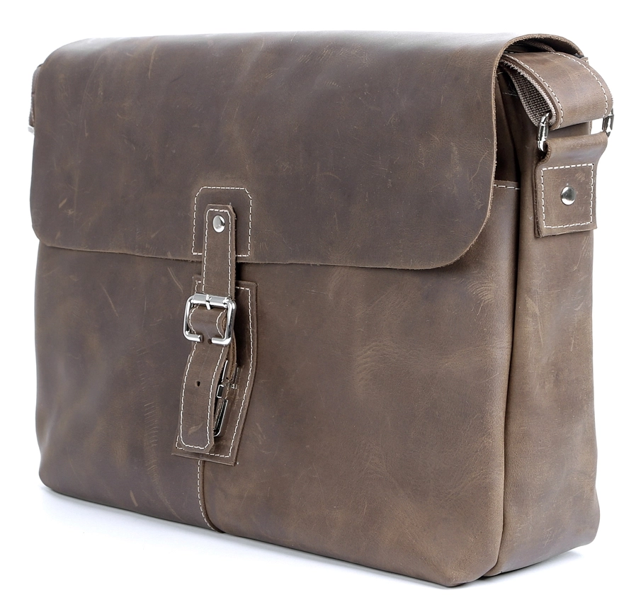 Вместительная мужская сумка через плечо из натуральной высококачественной винтажной кожи. Цвет фурнитуры: серебро. Сумка аккуратно прошита сверхпрочной нитью. Аксессуар закрывается при помощи клапана на защелке и молнией. Под клапаном расположено отделение на молнии. На задней внешней стороне находится карман на молнии. Данная модель изготавливается вручную и в ограниченном количестве. В такой сумке с легкостью помещается папка с документами формата А4.