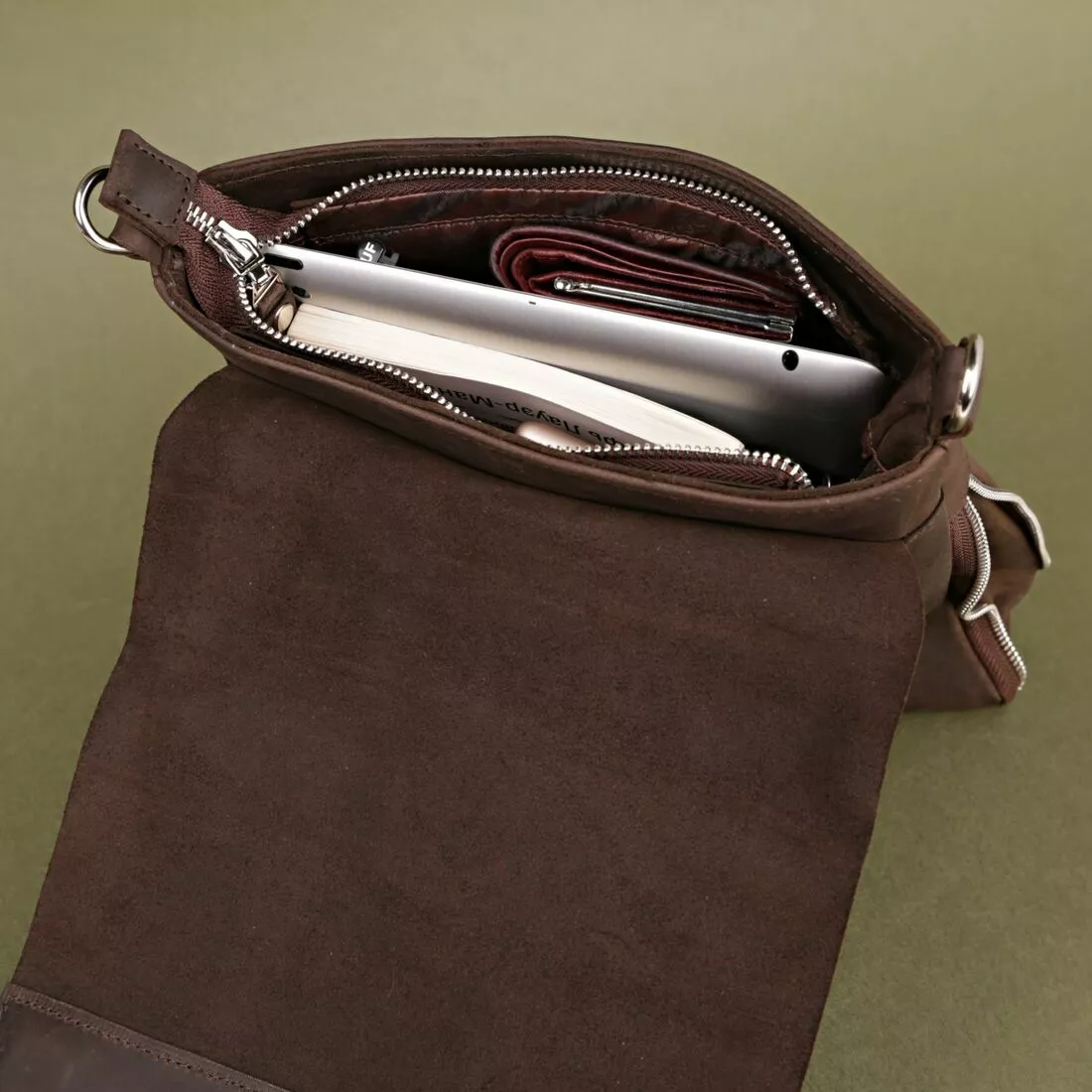 На задней стенке - скрытый, вместительный карман на
