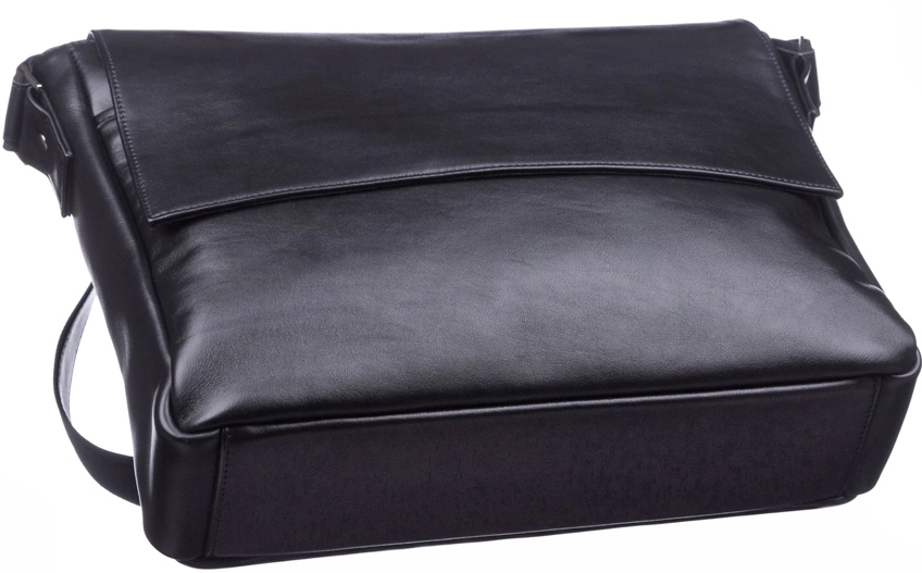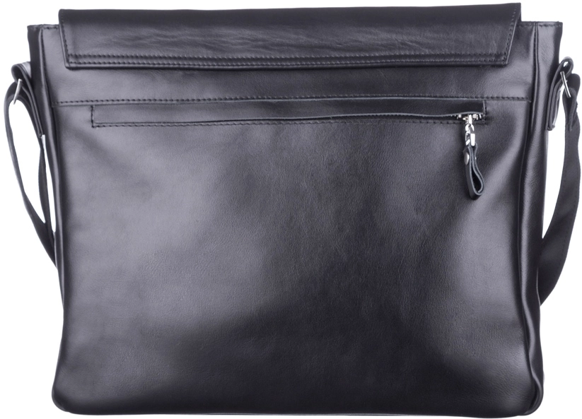На задней стенке есть скрытый карман на застежке, который прикрывается кожей. Закрывается сумка с помощью клапана с магнитами. При открытии глубокий накладной карман.