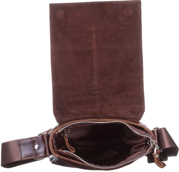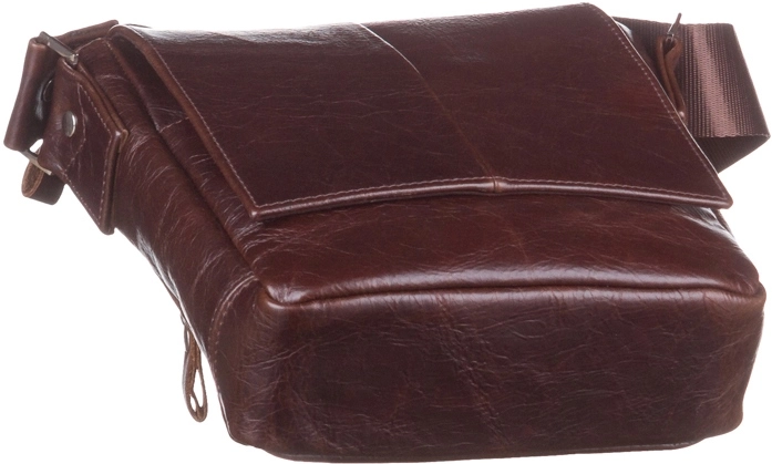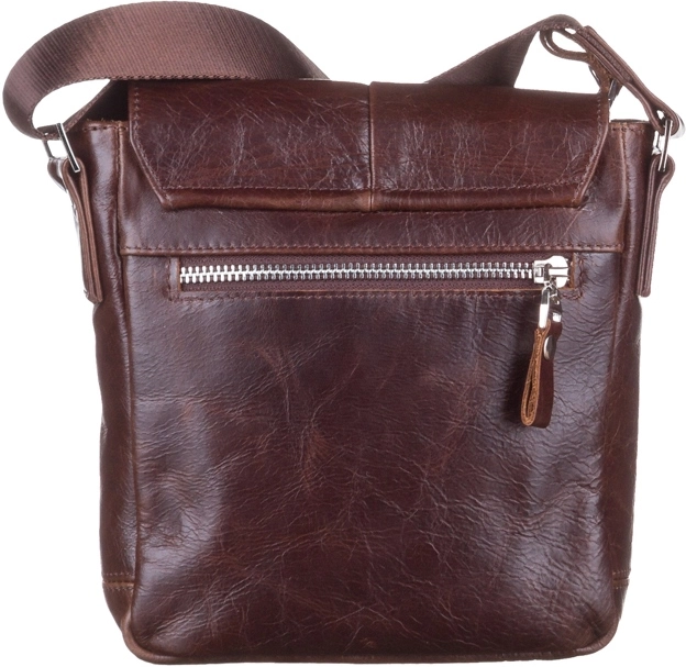 Небольшая мужская кожаная сумка через плечо украинского производства. Изделие выполнено из гладкой кожи, высокого качества. Цвет фурнитуры: серебро. Аксессуар закрывается при помощи клапана на двух скрытых магнитах и металлической молнией. Под клапаном расположен накладной карман. На задней внешней стороне данного аксессуара находится отделения на металлической молнии. Сумка носиться через плечо при помощи регулируемого текстильного плечевого ремня. Отличное решение для подарка мужчине любого возраста.
