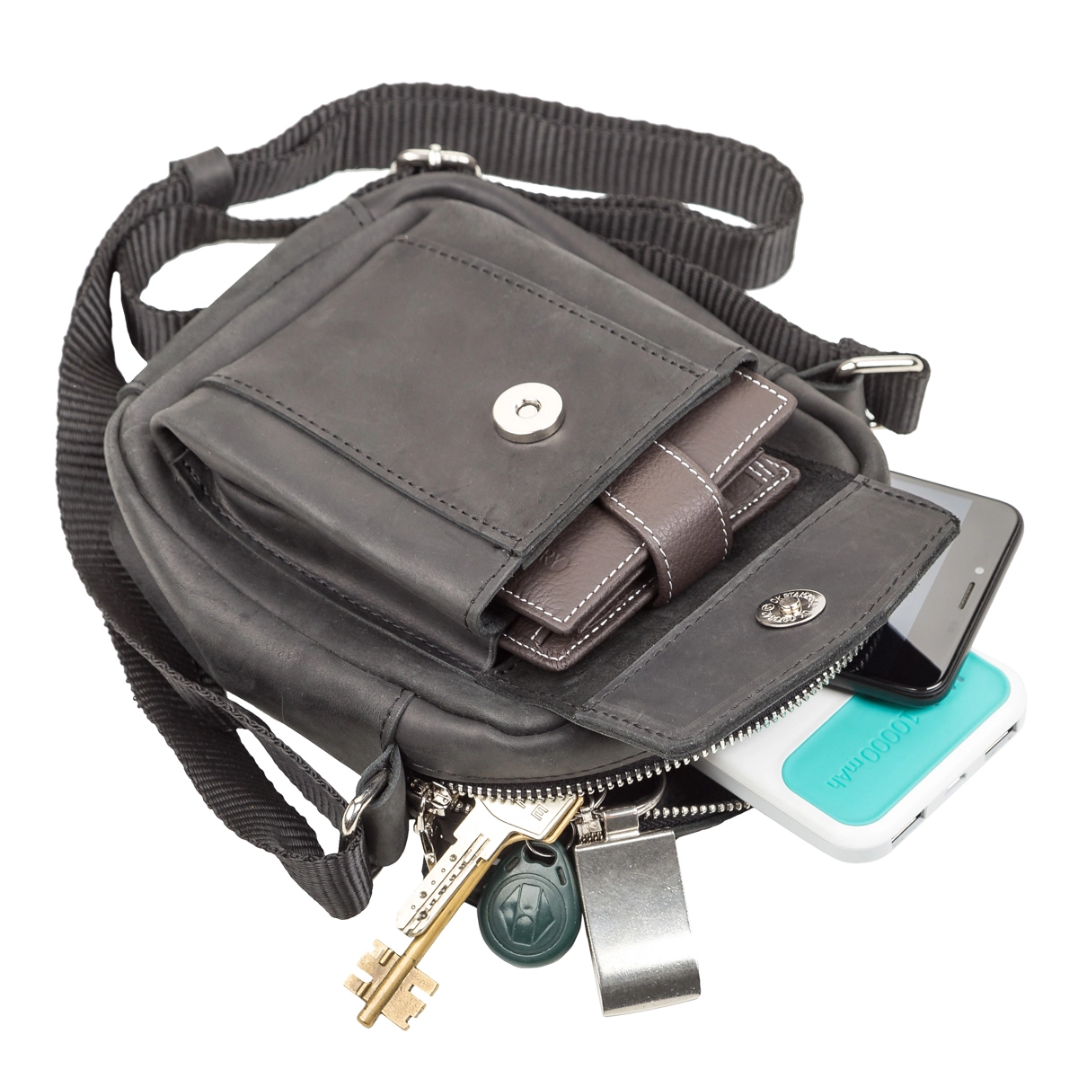 вмещает: телефон, документы, ключи.