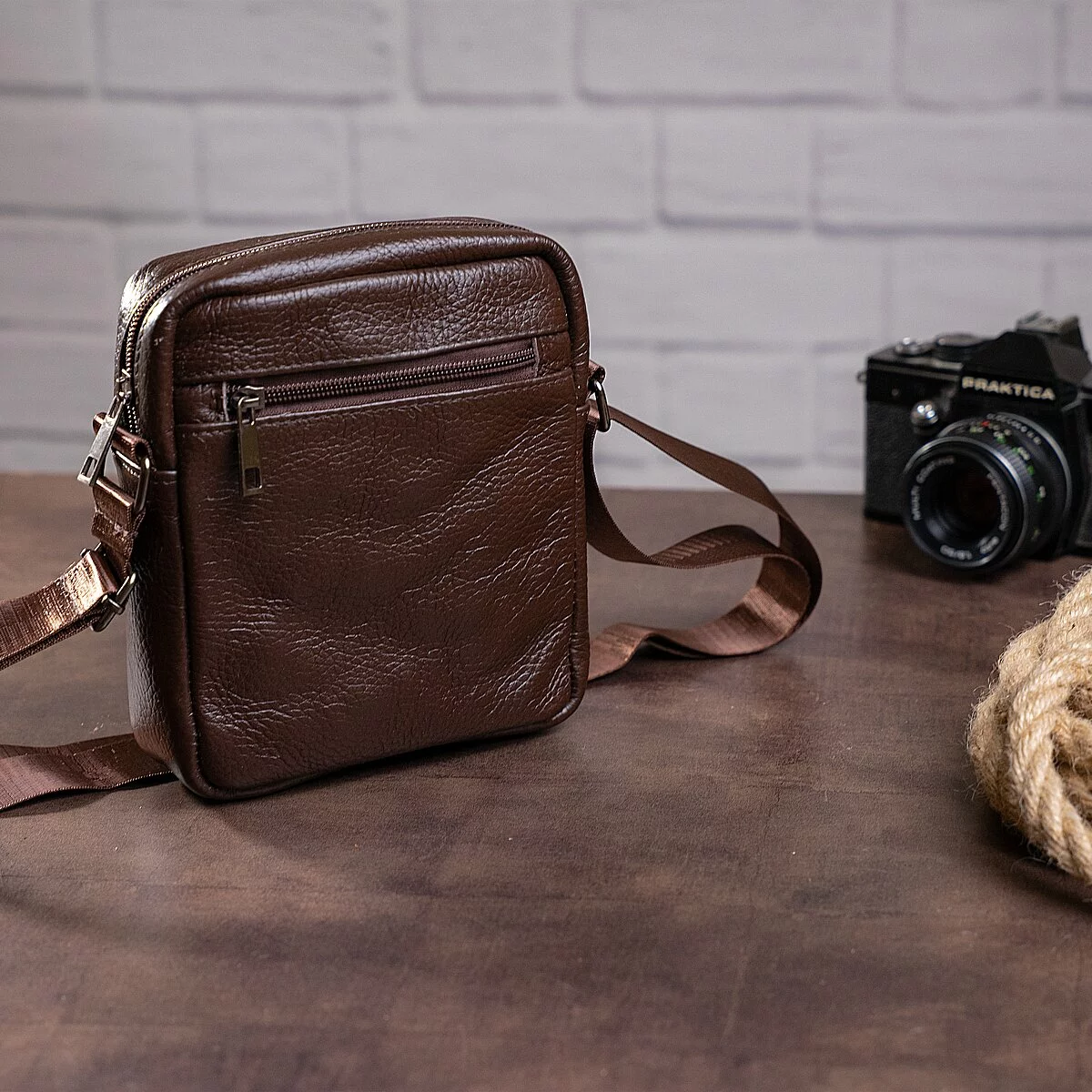 Очень компактная мужская сумка из плотной натуральной кожи