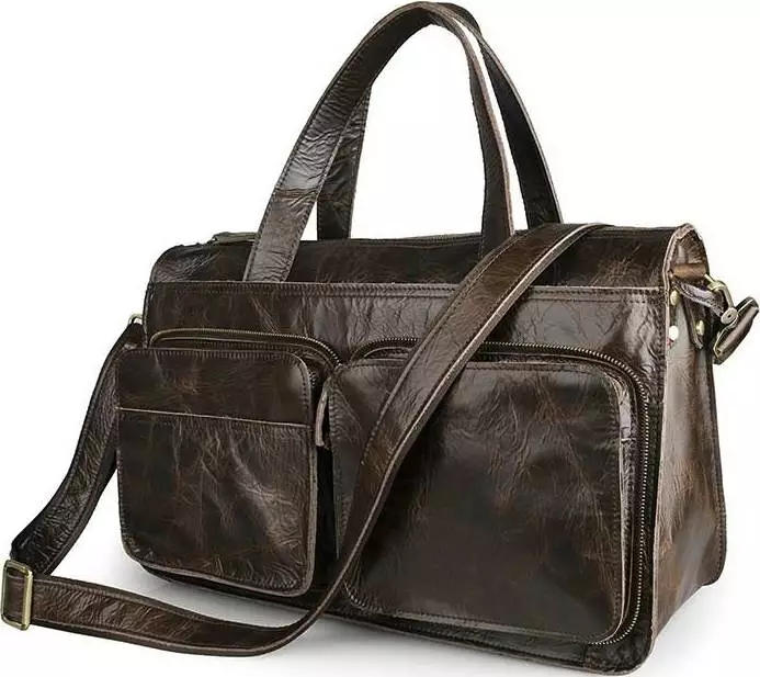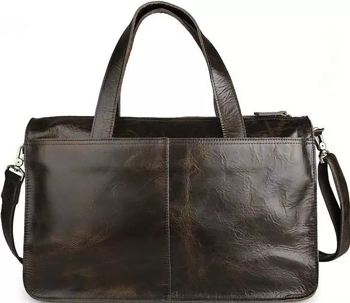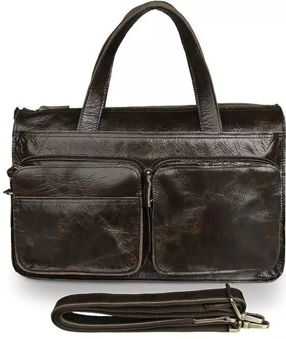Вместительная кожаная сумка коричневого цвета, из натуральной высококачественной кожи. Цвет фурнитуры: латунь. На лицевой стороне расположены три накладных кармана на молниях. На задней внешней стороне данной модели находится один карман на молнии. Аксессуар имеет одно основное отделение на молнии, в котором находится один скрытый карман на змейке и два накладных кармана. Носится данный аксессуар в руке при помощи надежных кожаных ручек и через плечо при помощи съемного регулируемого кожаного ремня. Подкладка выполнена из прочного текстильного материала коричневого цвета. Аксессуар поставляется в текстильном пылезащитном чехле белого цвета.