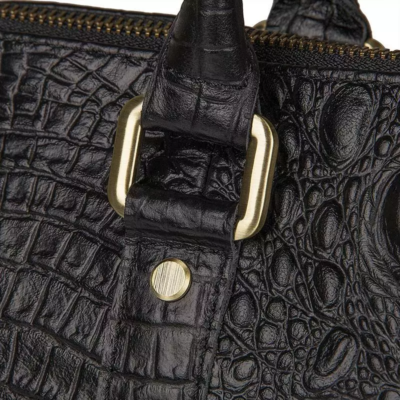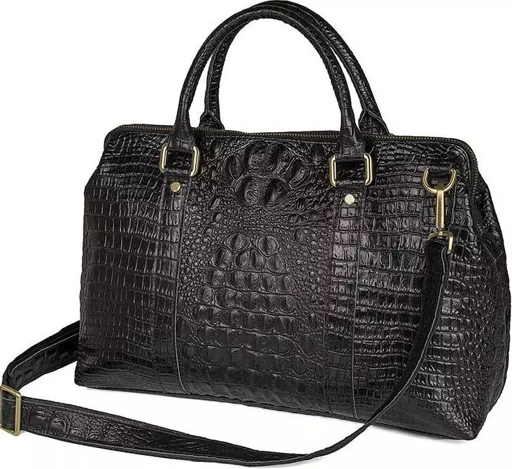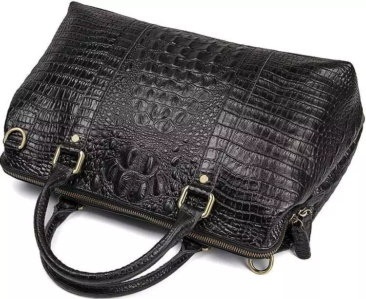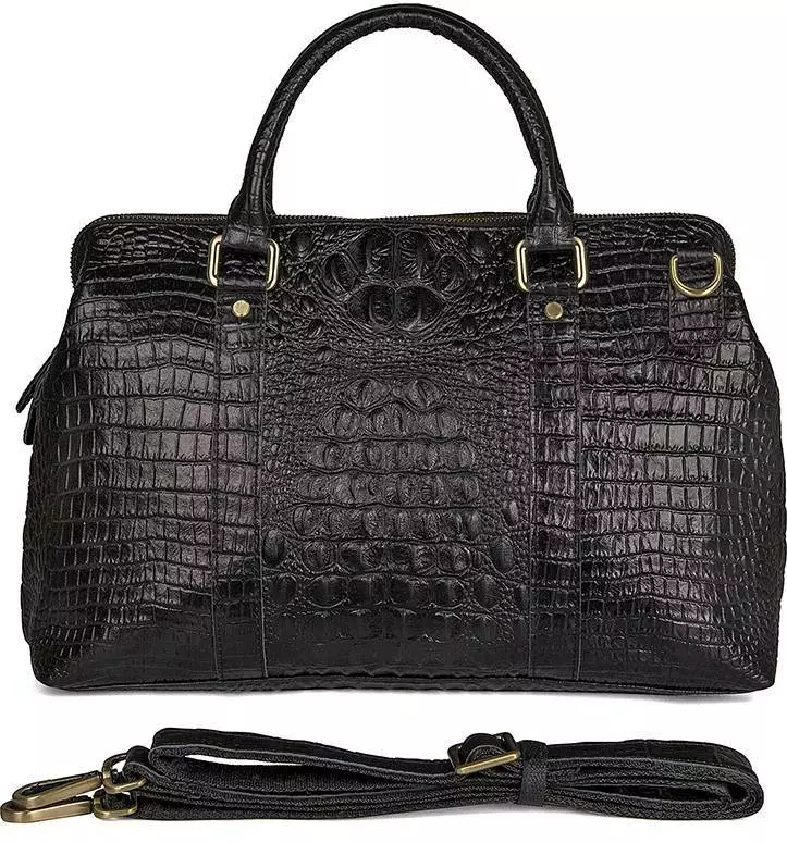 Вместительная сумка из натуральной кожи с фактурой под крокодила,