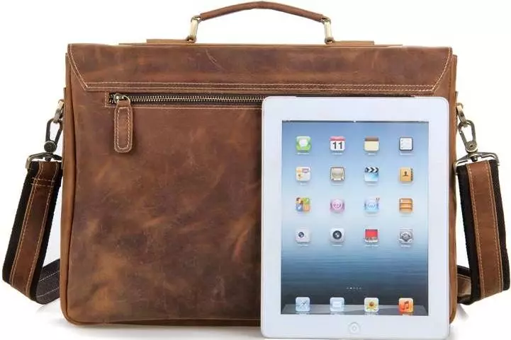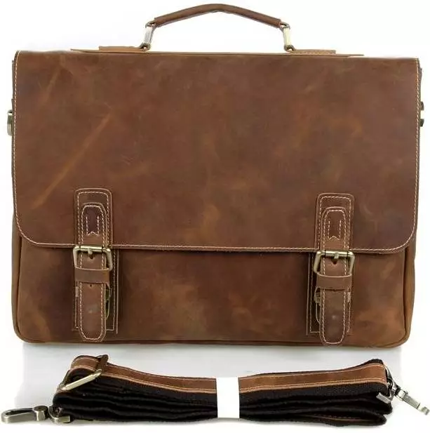 Надежная мужская кожаная сумка из натуральной винтажной кожи.