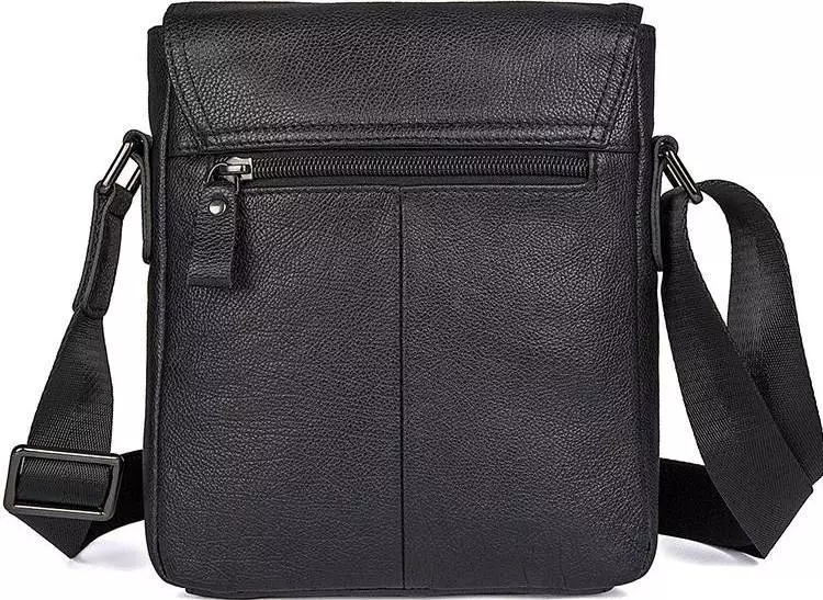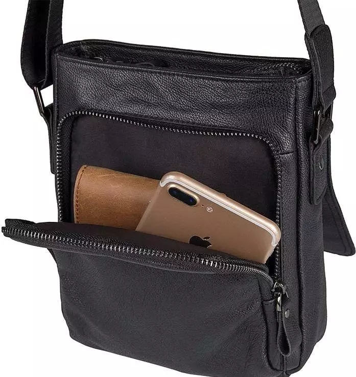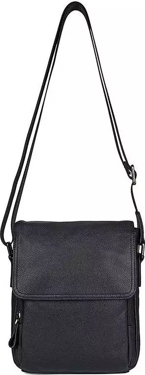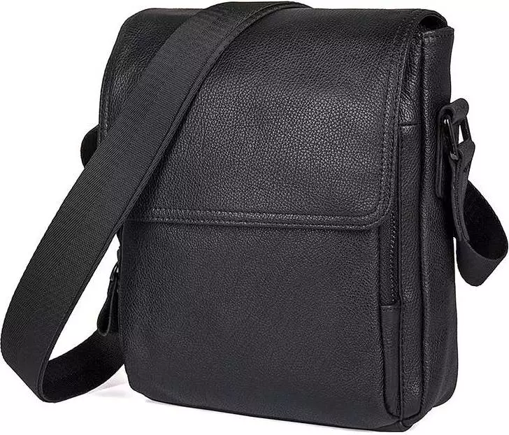 Компактная мужская сумка черного цвета, из натуральной зернистой