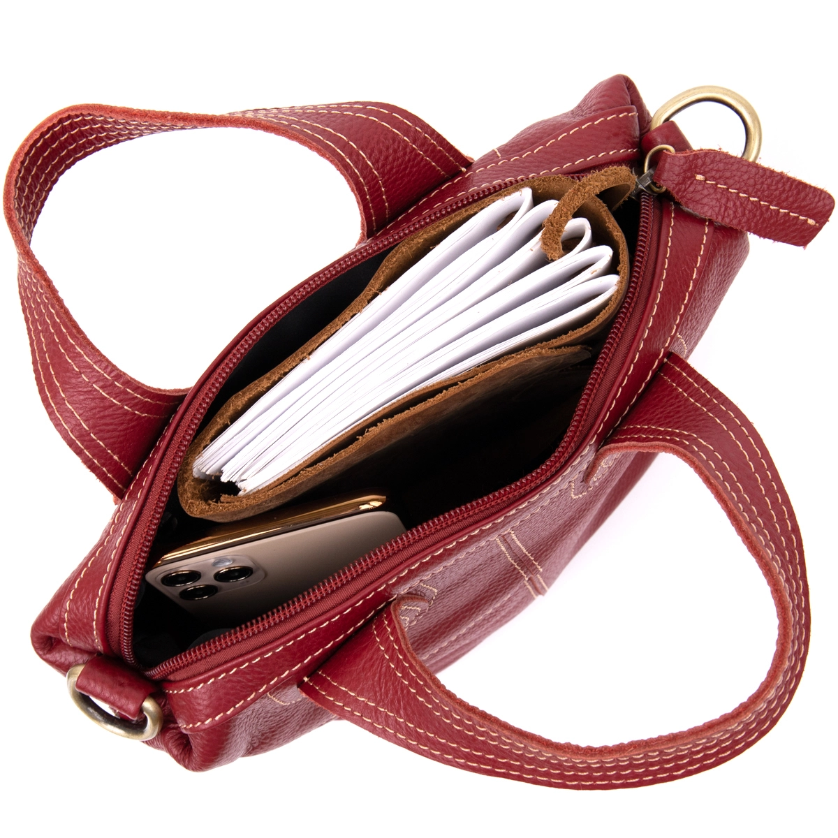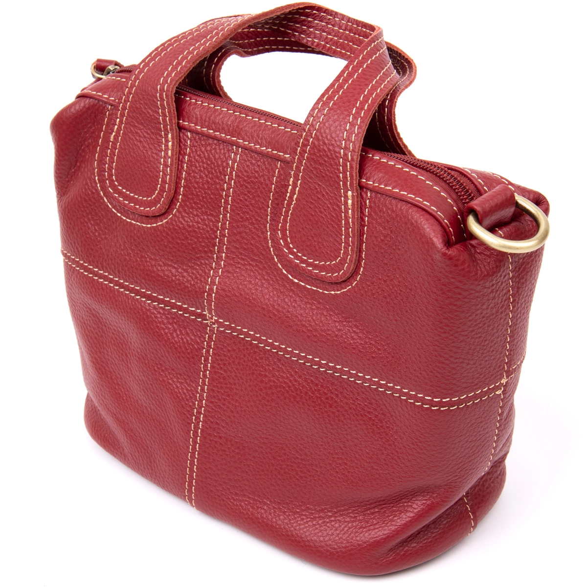 Компактная женская сумка из натуральной кожи со светлой нитью в