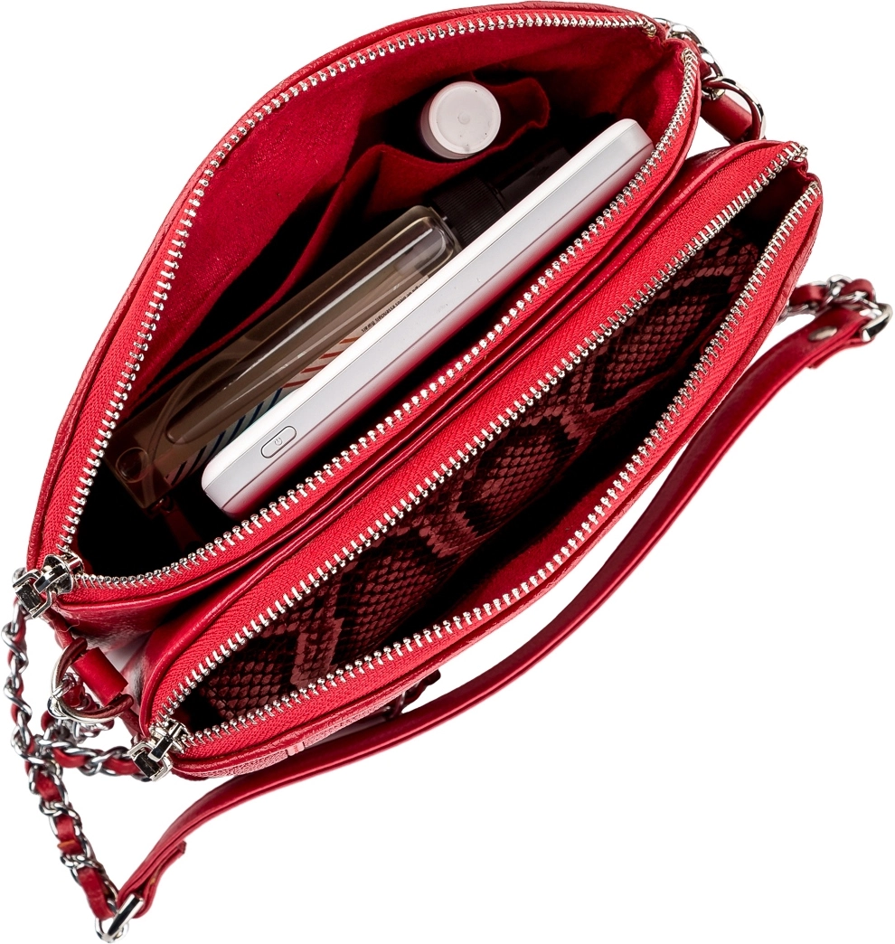 - комбинированный ремешок на плече: цепочка и телячья кожа;
