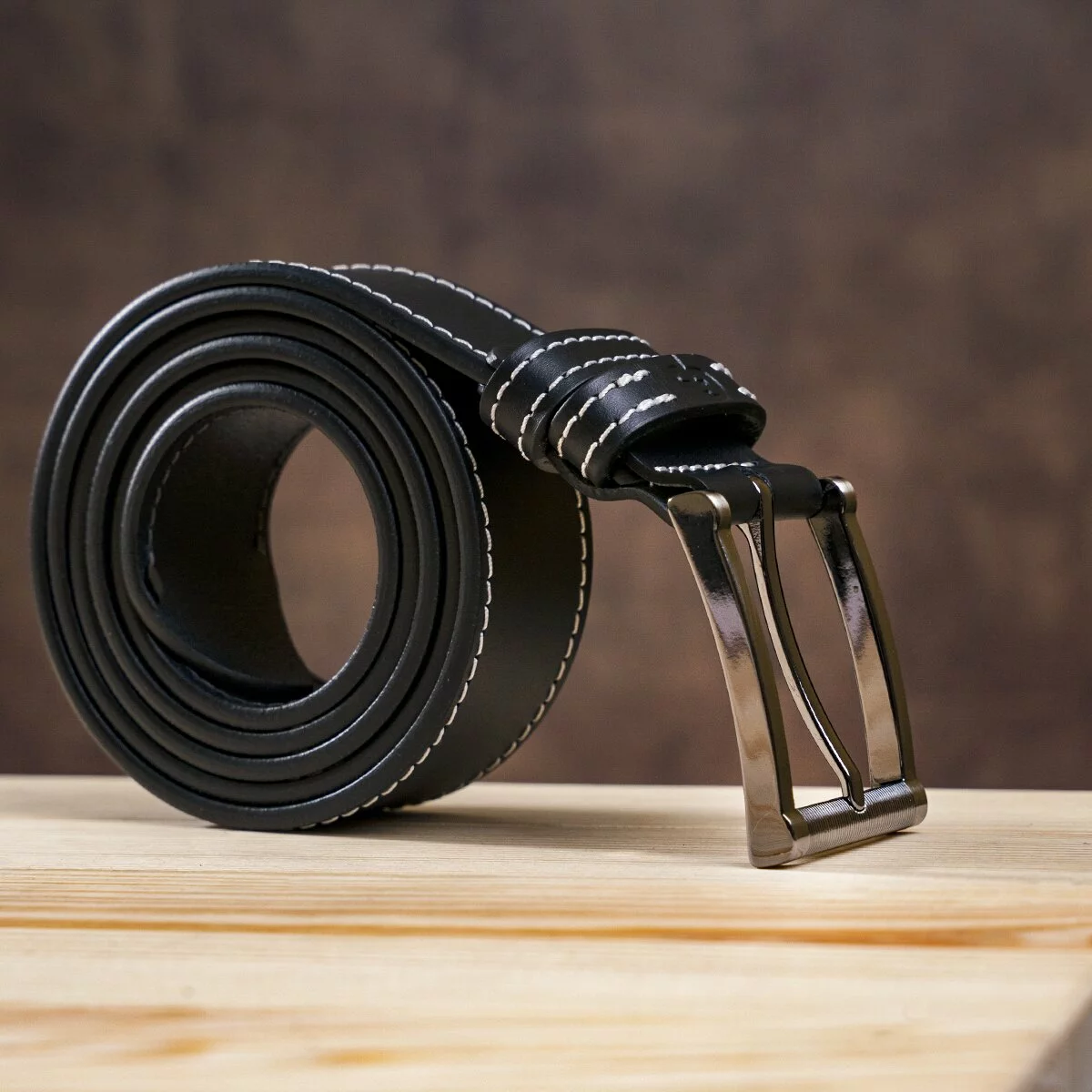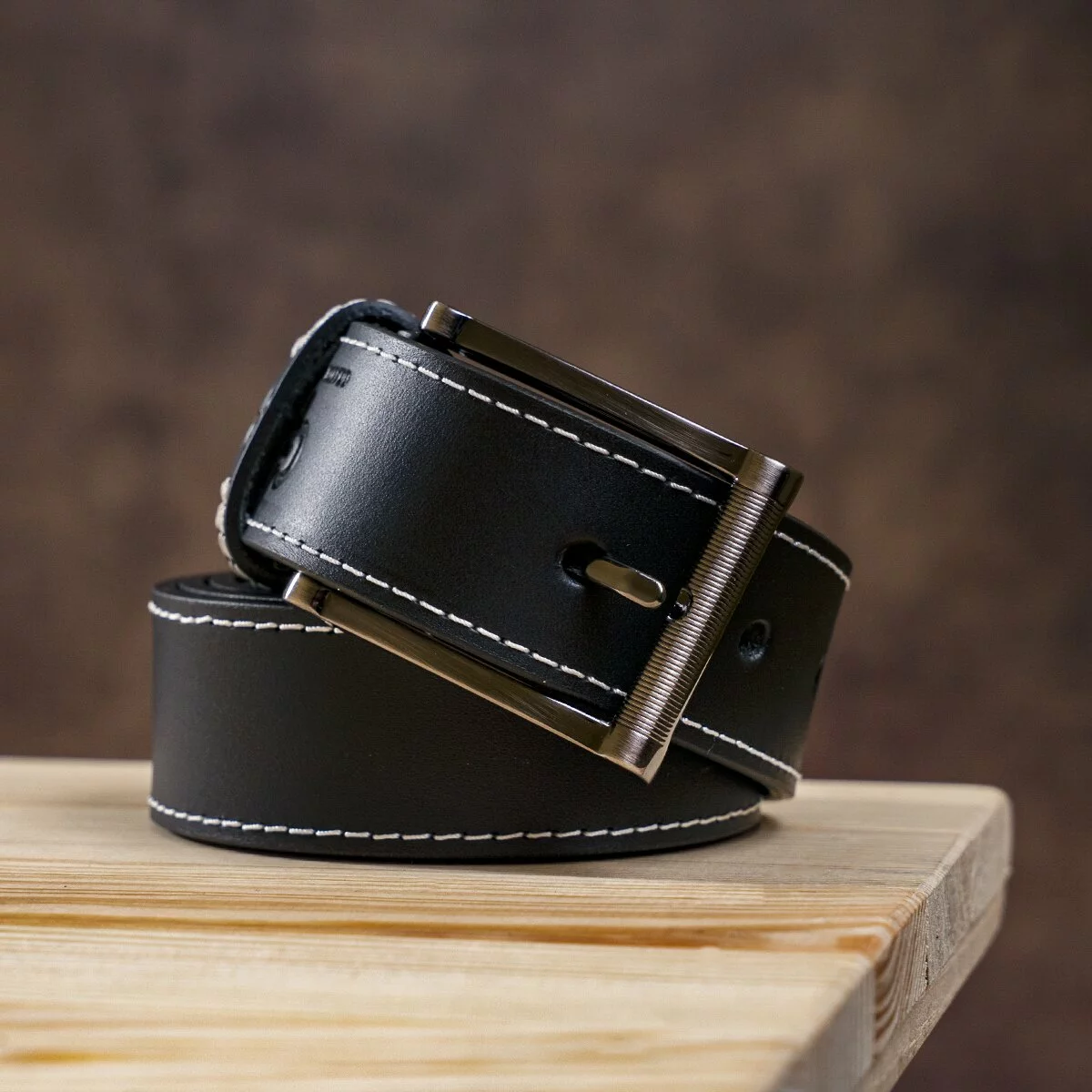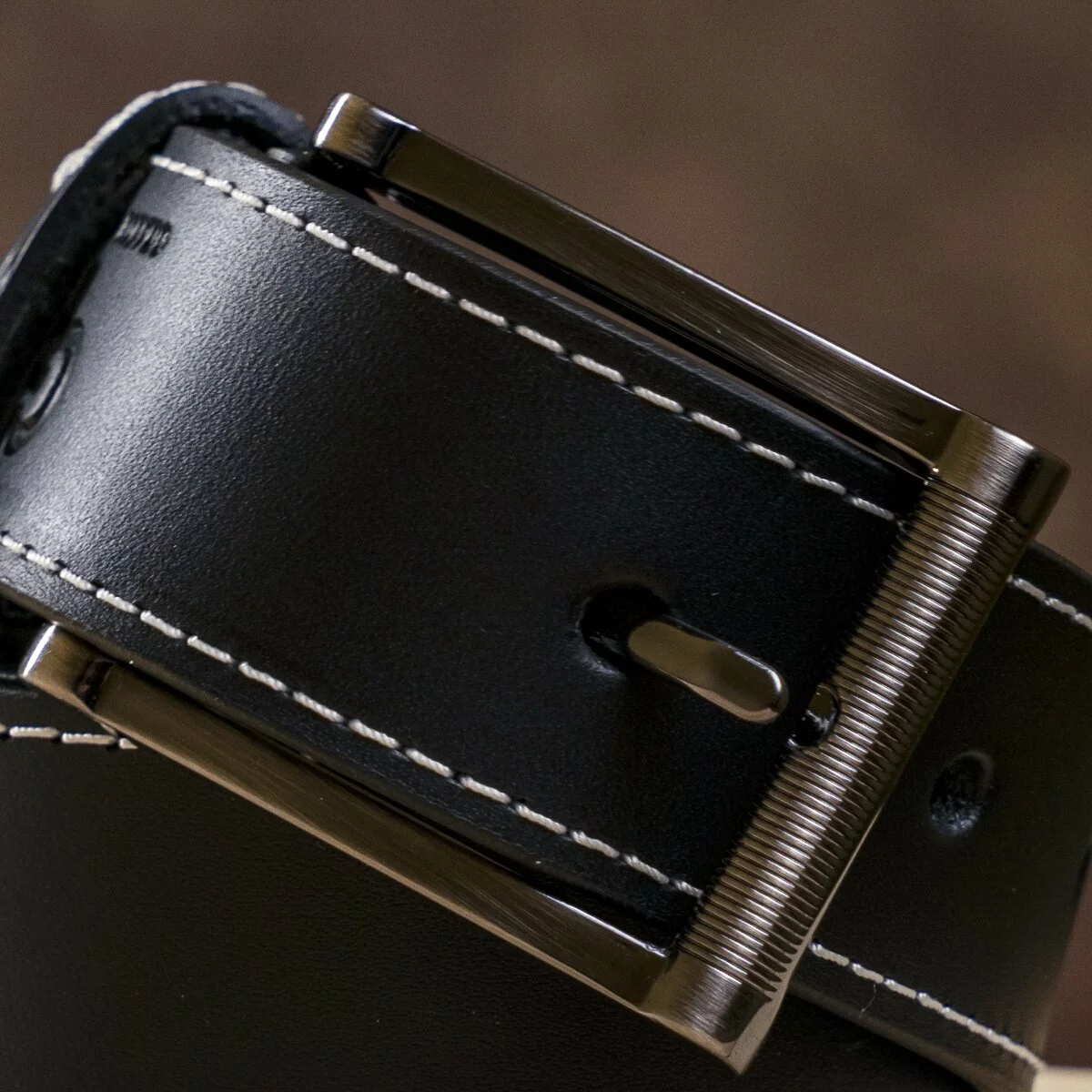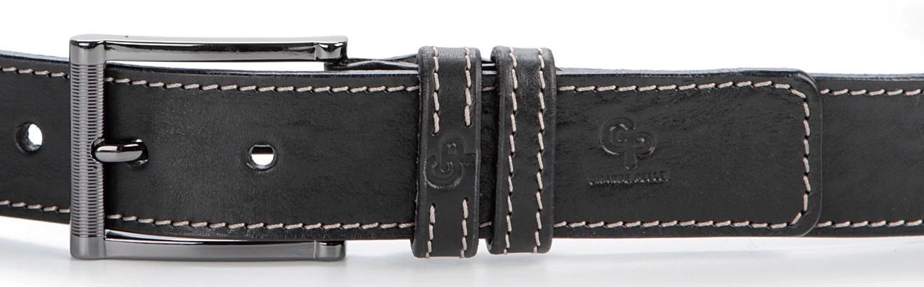 Этот ремень имеет свою стильную изюминку - его черный цвет оттеняется контрастной белой строчкой, которая присутствует не только на полотне ремня, но и на шлевках. Такое оформление в сочетании с ребристой пряжкой придает модные акценты аксессуару, поэтому он обязательно понравится тем, кто следит за современными модными тенденциями. Ну а высочайшее качество пошива и кожи, как всегда, на первом месте для изделий GRANDE PELLE.