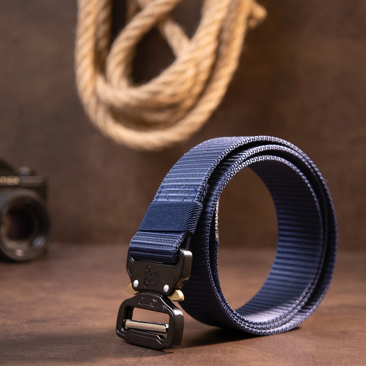 Текстильный ремешок в синем цвете с оригинальной пряжкой. Изделие