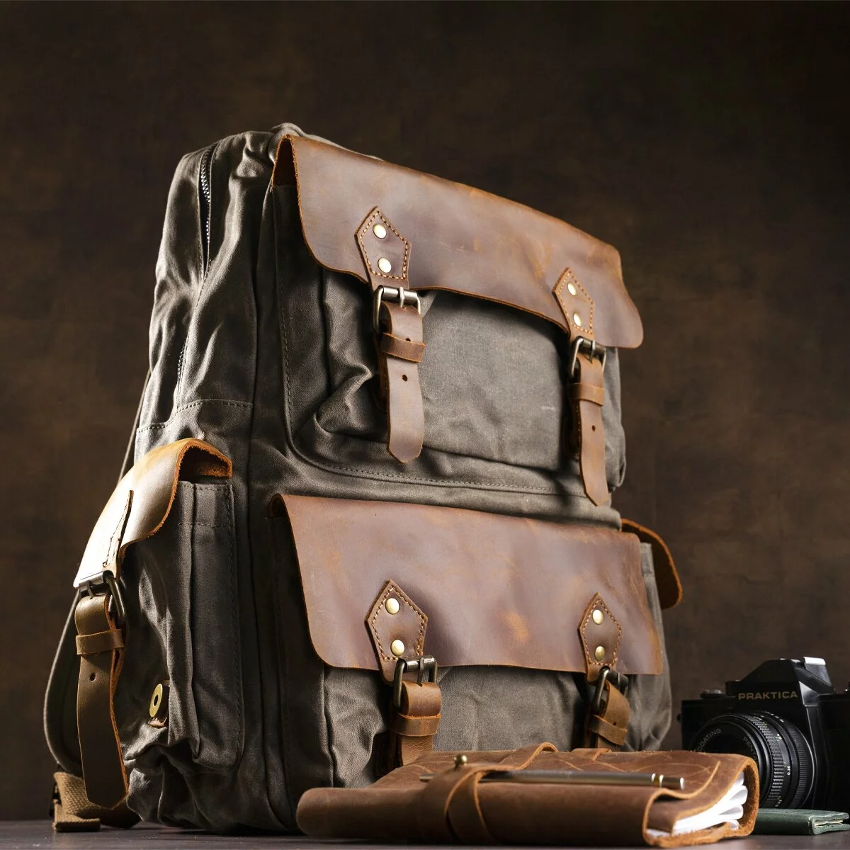 Вместительный текстильный рюкзак в сочетании с натуральной