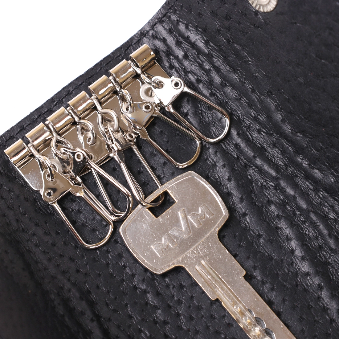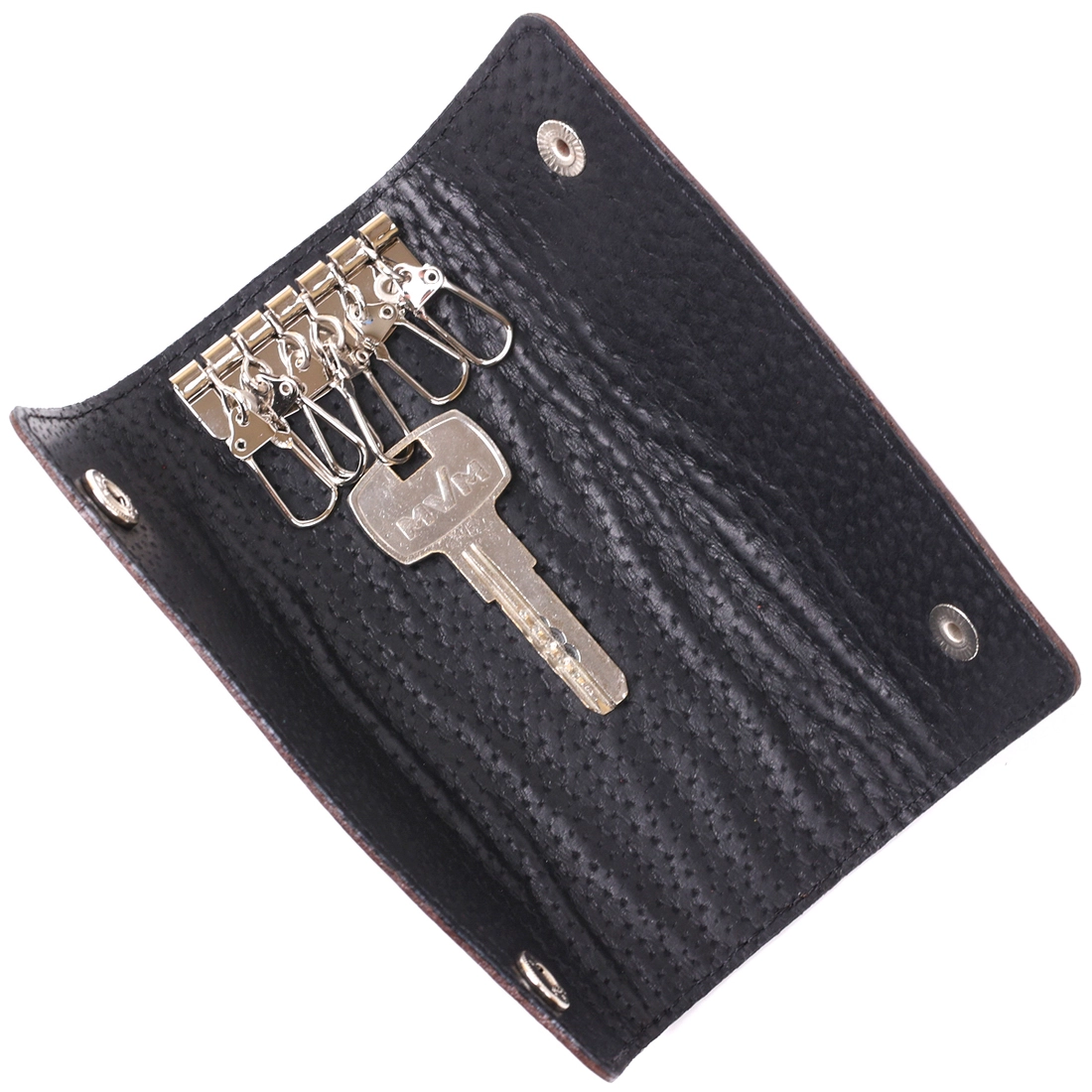 Удобная и практична ключница для надежного хранения Ваших ключей. Выполнен аксессуар из натуральной высококлассной кожи с высокими показателями прочности. Ключи крепятся с помощью шести карабинов внутри изделия, которое закрывается на две кнопки. Такую ключницу можно подарить на любой праздник дорогому Вам человеку.