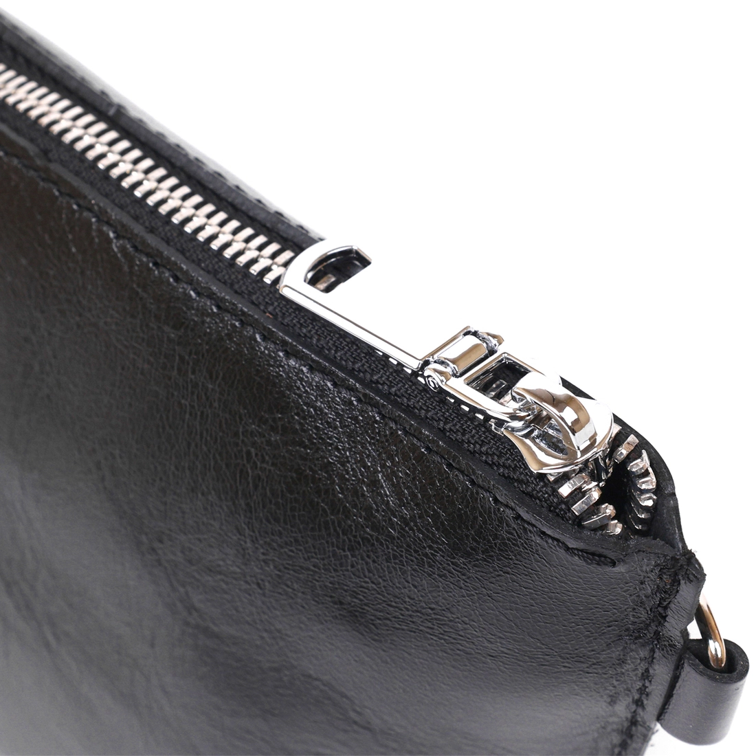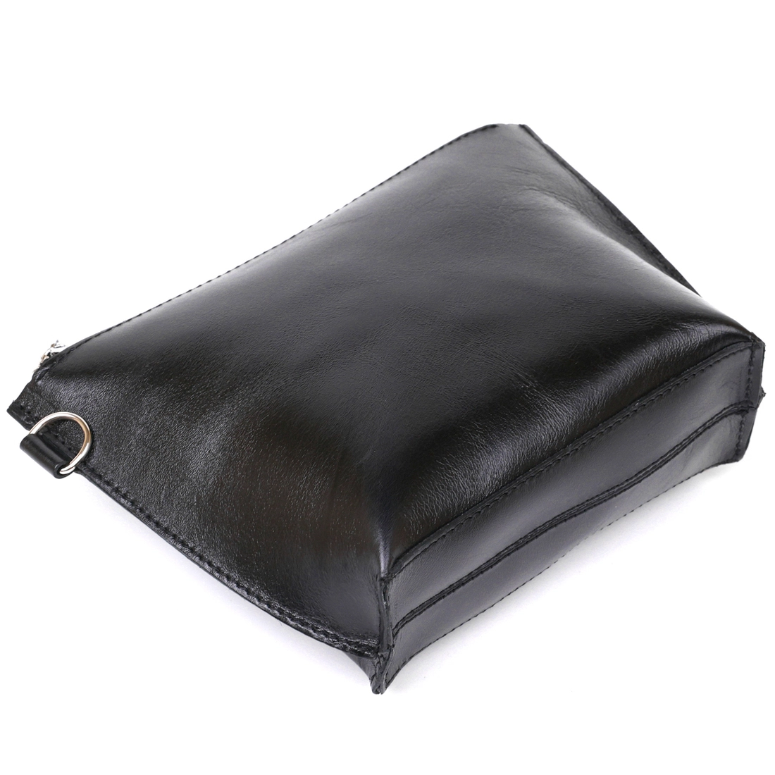 Практичный и полезный аксессуар для повседневного использования или для путешествий, куда могут поместиться мелкие ценные вещи. Материал – натуральная кожа высокого качества с отличными эксплуатационными показателями. Цвет изделия – классический черный с легким блеском, фактура – гладкая и приятная на ощупь. Закрывается данная модель на молнию.