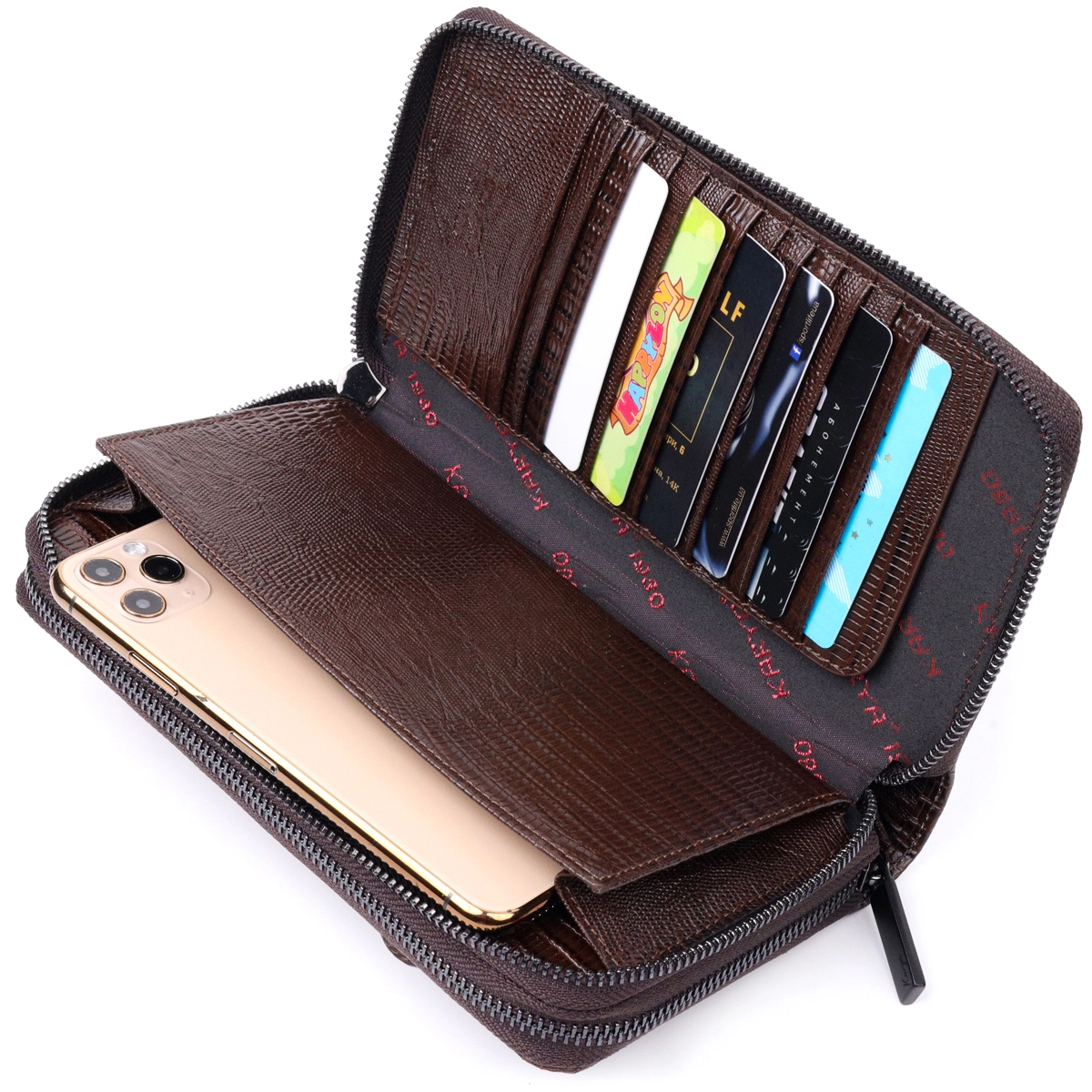 скрытый отсек для документов, карман для мобильного телефона;