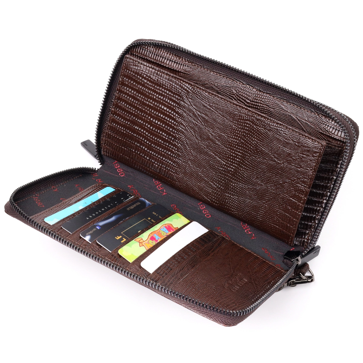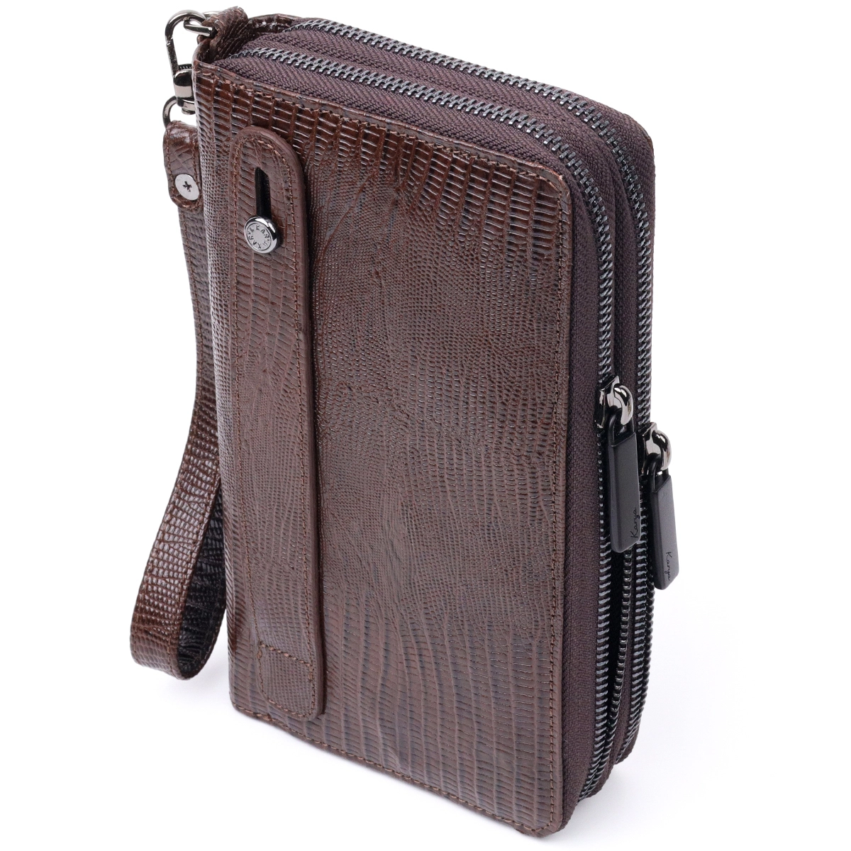 - снаружи на тыльной стороне мужского клатча расположена ручка для