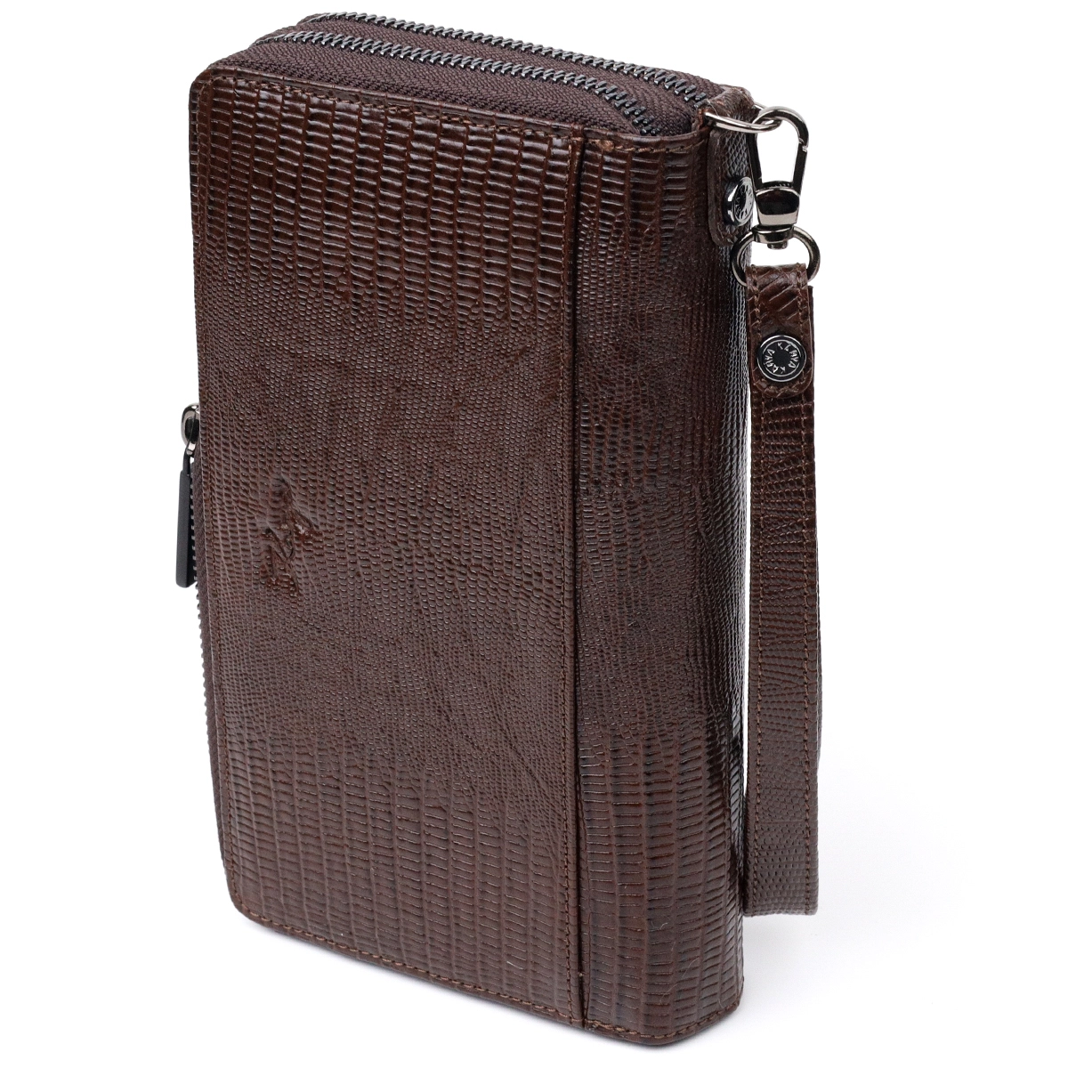 Стильный мужской клатч из натуральной фактурной кожи с использованием добротного текстиля (внутренняя подкладка). Носится с помощью ремешка на запястье или просто в руке. Используется качественная фурнитура цвета темного серебра. Барсетка в одно и тоже время, компактна и функциональна. С таким аксессуаром, мужчина будет выглядеть солидно и уверенным в себе.