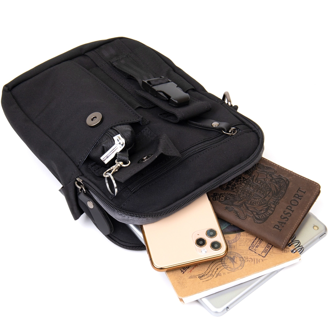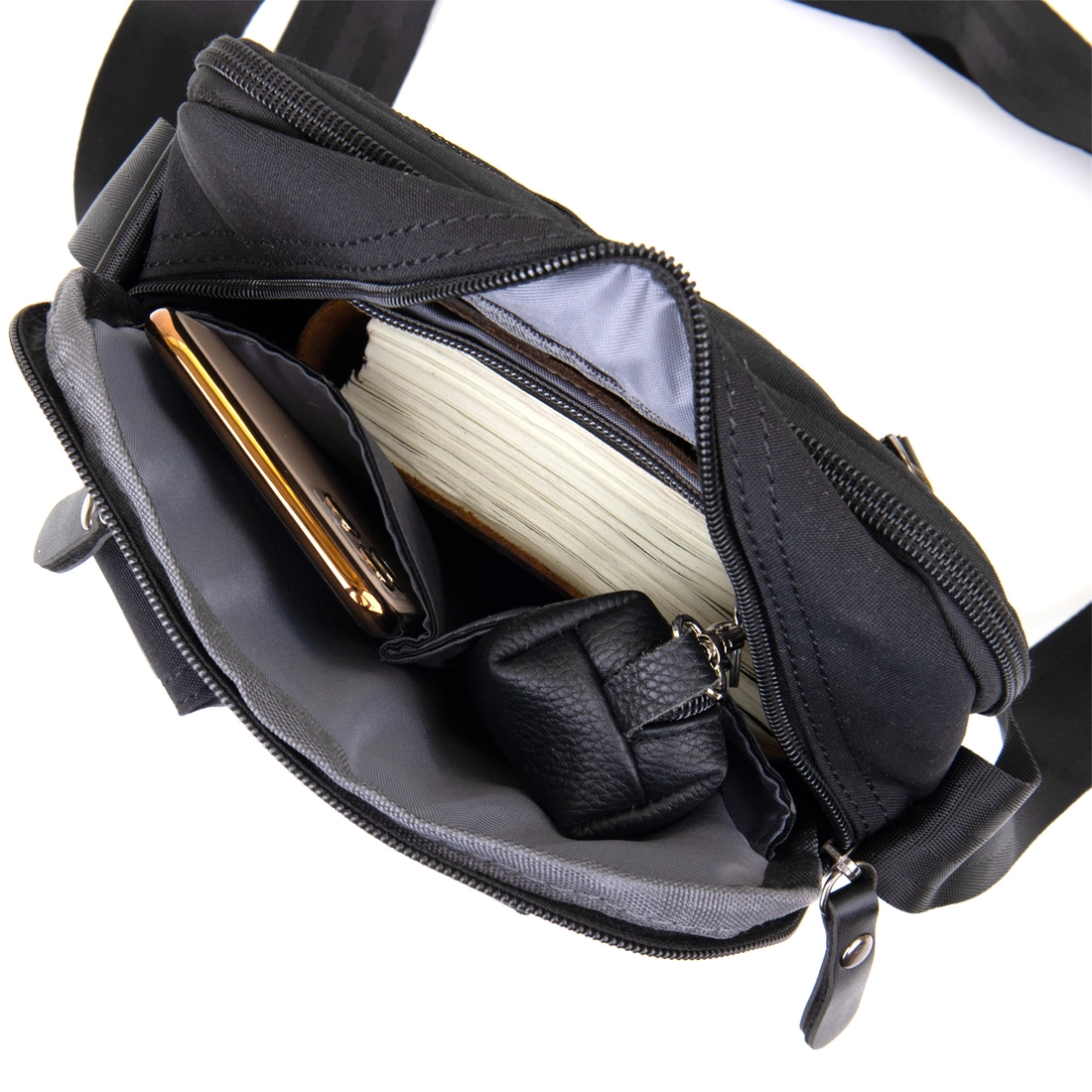 - в ближнем отделении два кармашка для мобильного телефона и