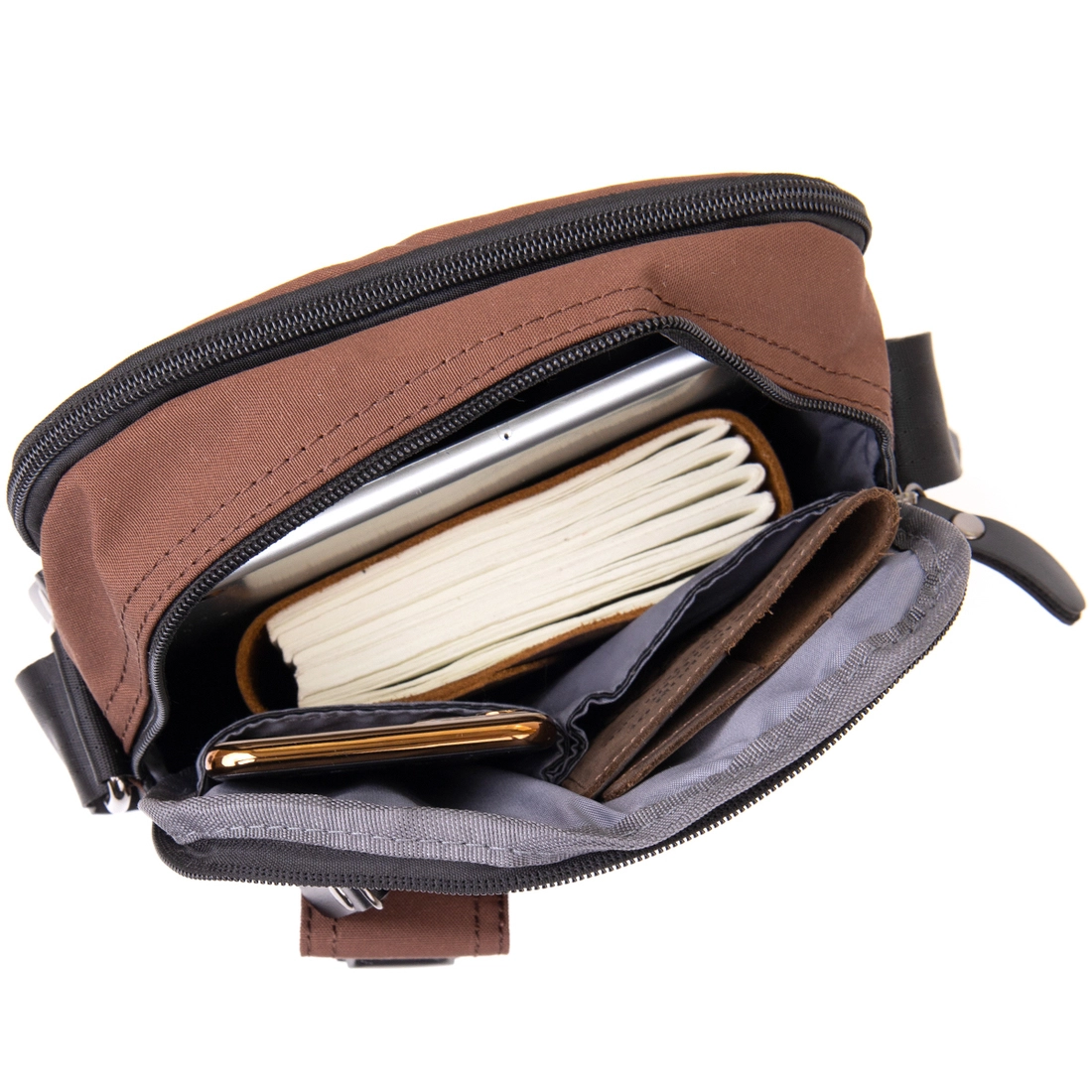 - в ближнем отделении два кармашка для мобильного телефона и
