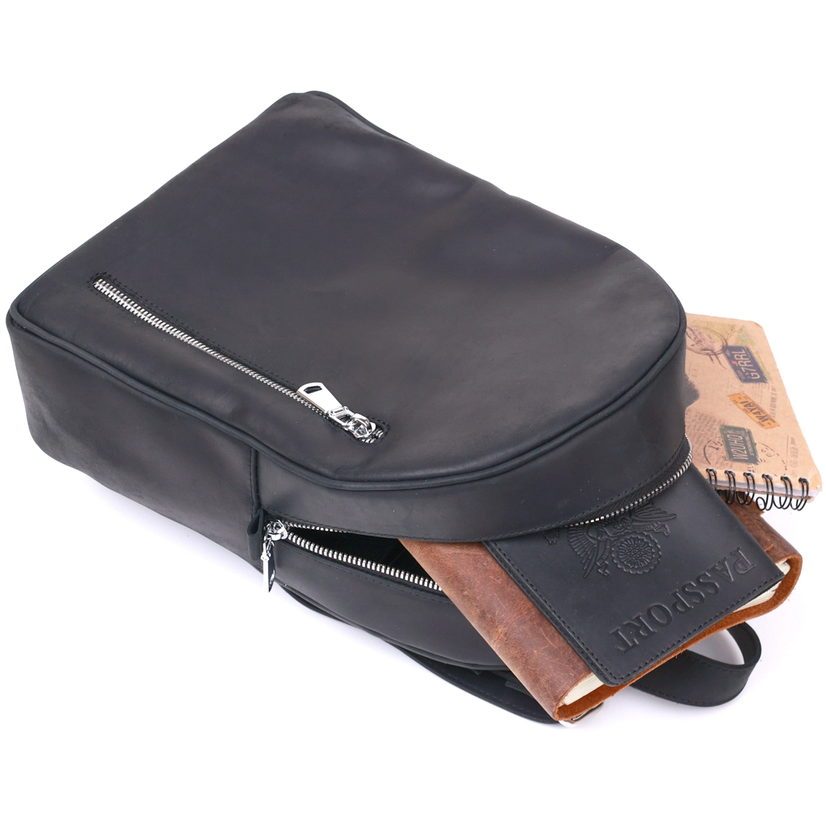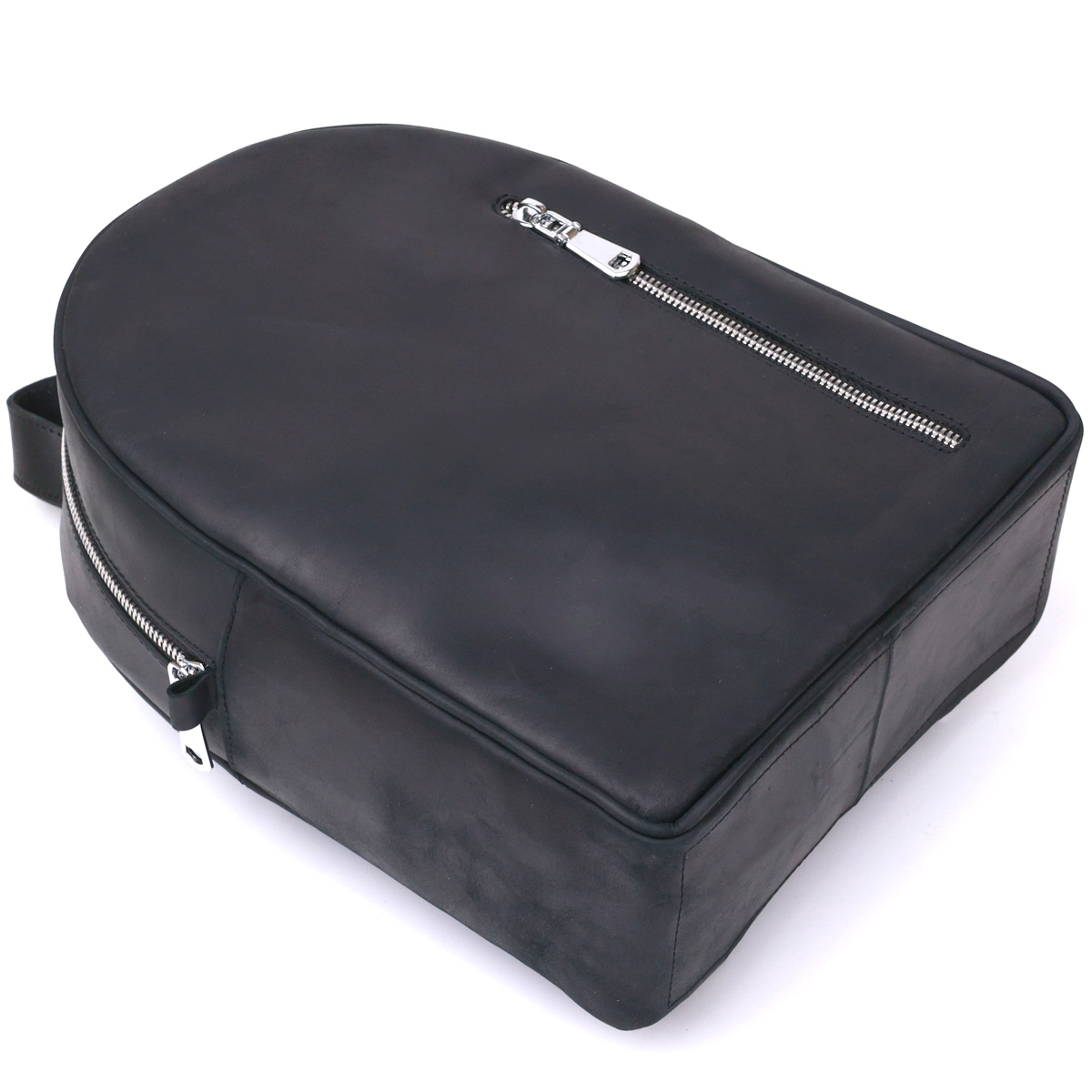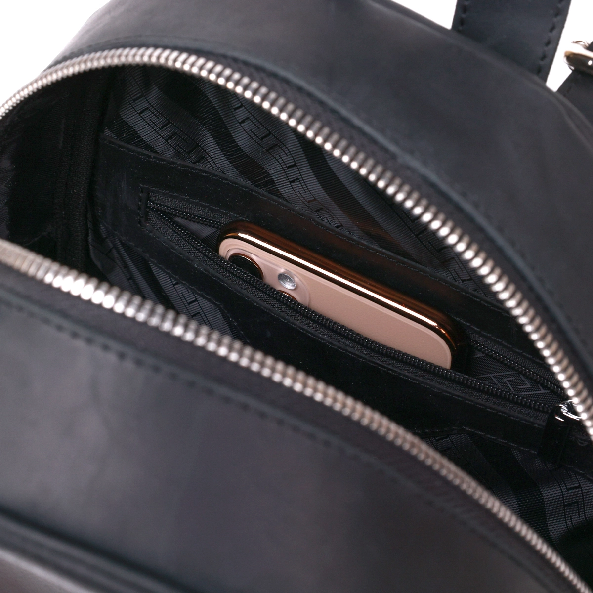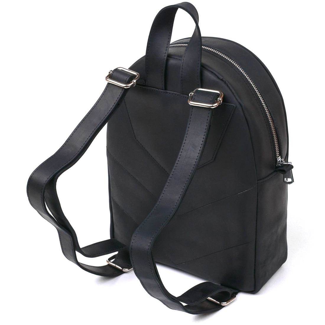 Замечательный женский рюкзак в винтажном стиле для повседневного использования от украинского производителя. Выполнена данная модель из натуральной высококлассной кожи с отличными характеристиками. Цвет изделия – универсальный черный, фактура гладкая матовая. Шлейки регулируются по длине и также выполнены из натуральной кожи.