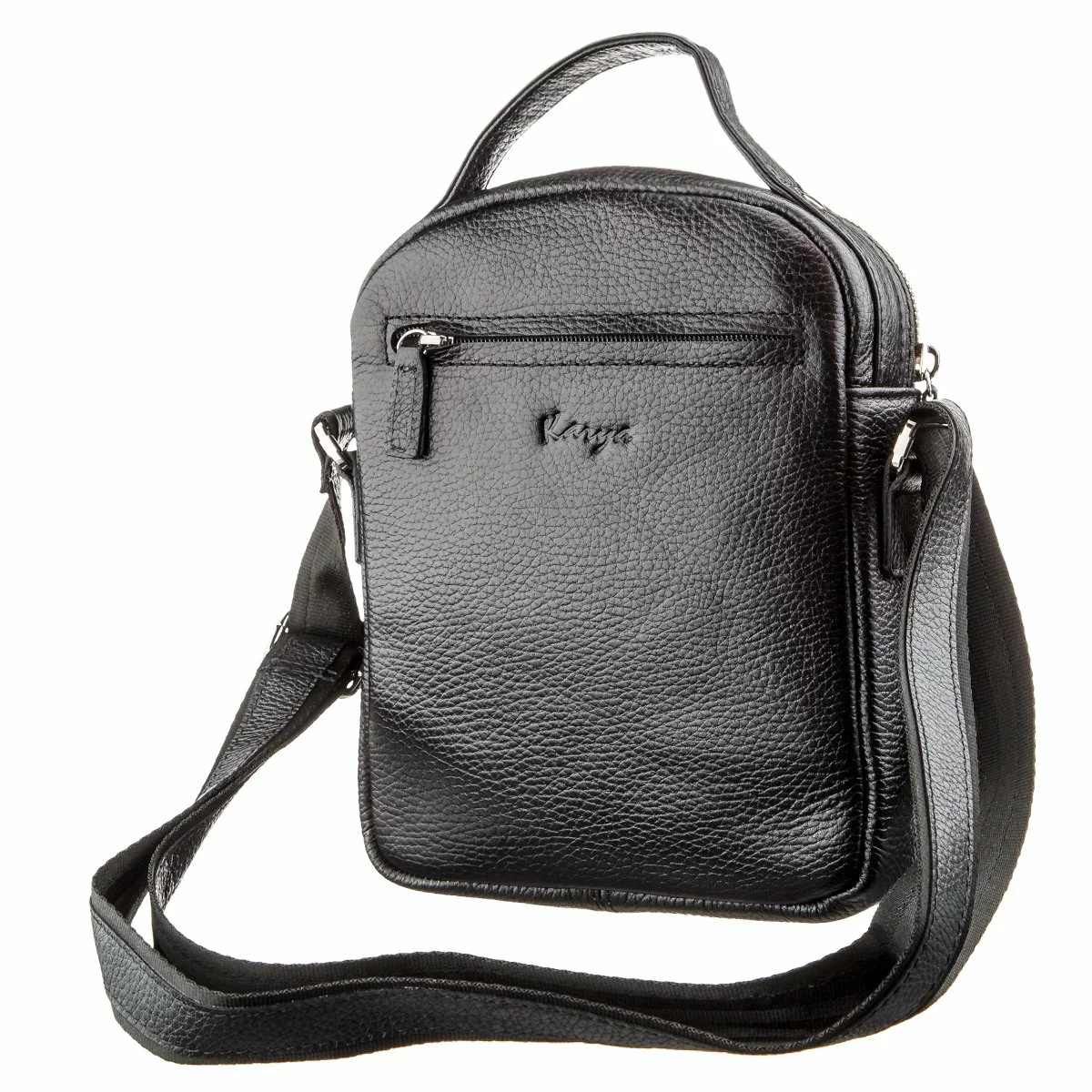 - кожаная ручка для носки в руке и несъемная текстильная ручка с