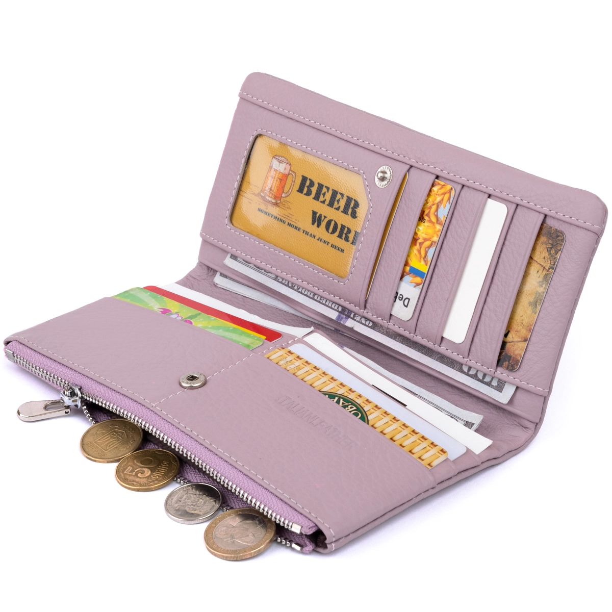 небольшого размера. Аксессуар имеет карманы как для купюр, так и