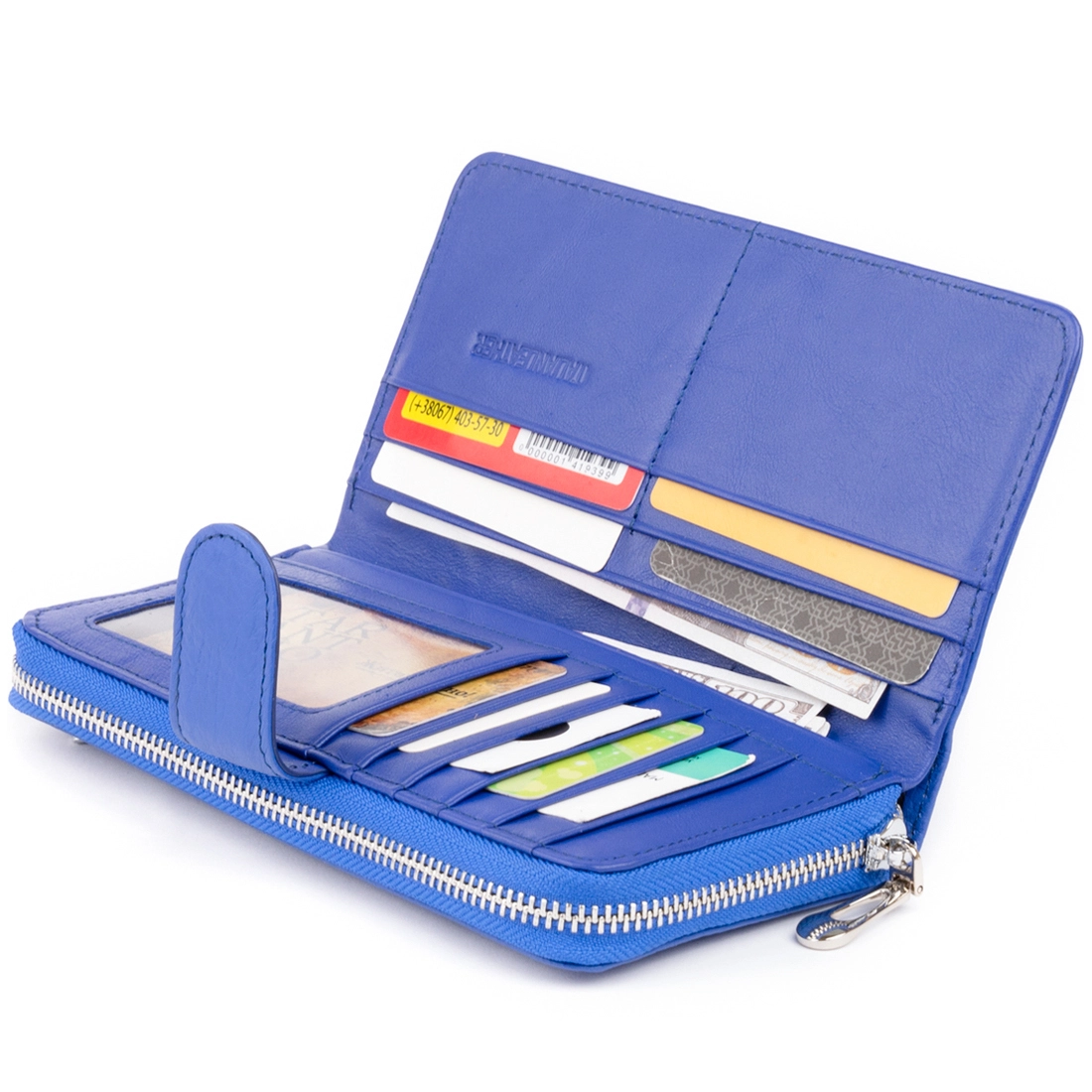 Вместительный кошелек для мужчин и женщин насыщенного синего цвета.