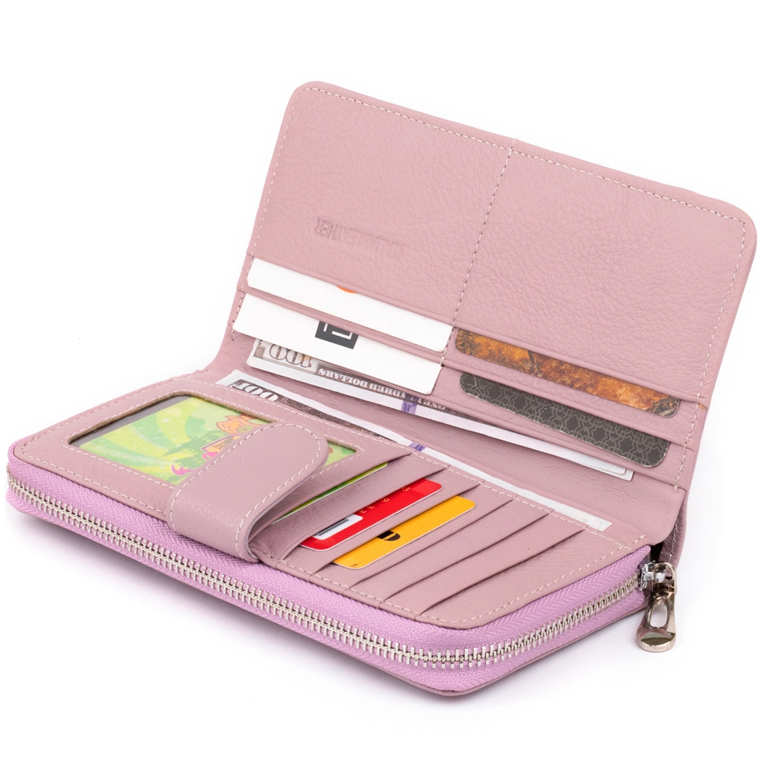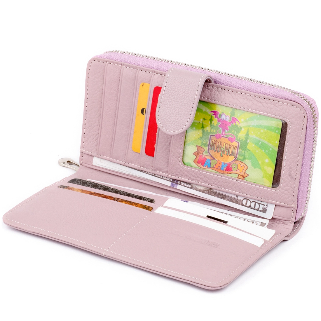 Вместительный кошелек для девушек оригинального лилового цвета.