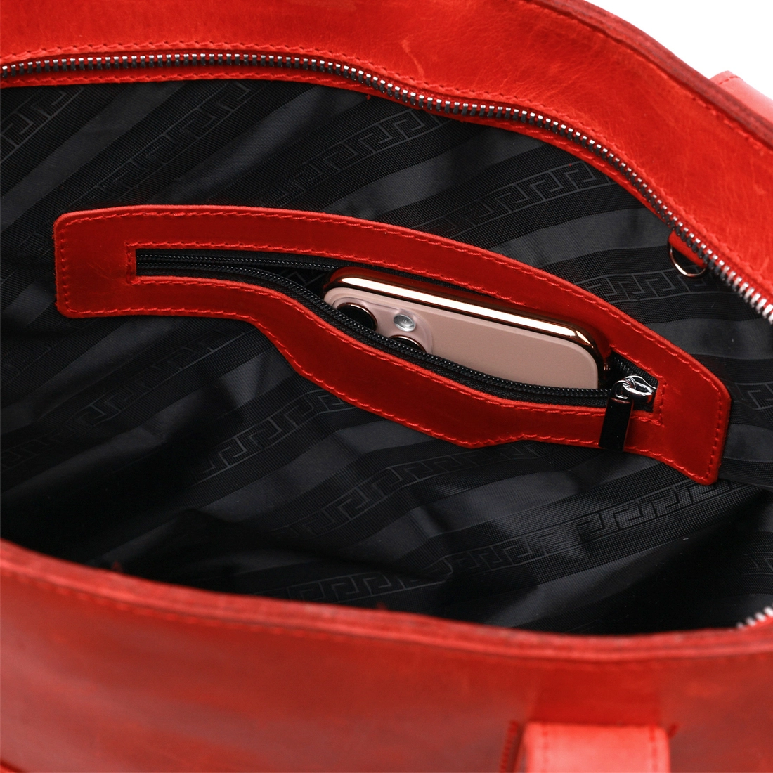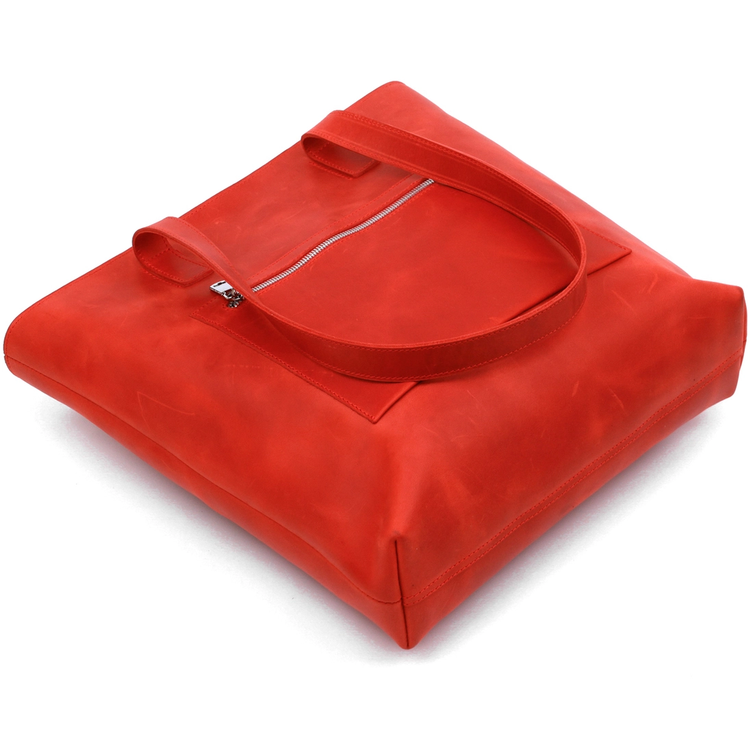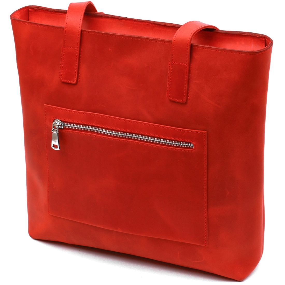 Превосходная женская сумка для шоппинга в модном и современном дизайне от украинского производителя. Имеет одно просторное отделение и два кармана на молнии внутри и снаружи. Материал изготовления – натуральная кожа высокого класса и с отличными характеристиками в эксплуатации. Цвет изделия – насыщенный красный, что смотрится очень женственно, фактура – матовая и винтажная.