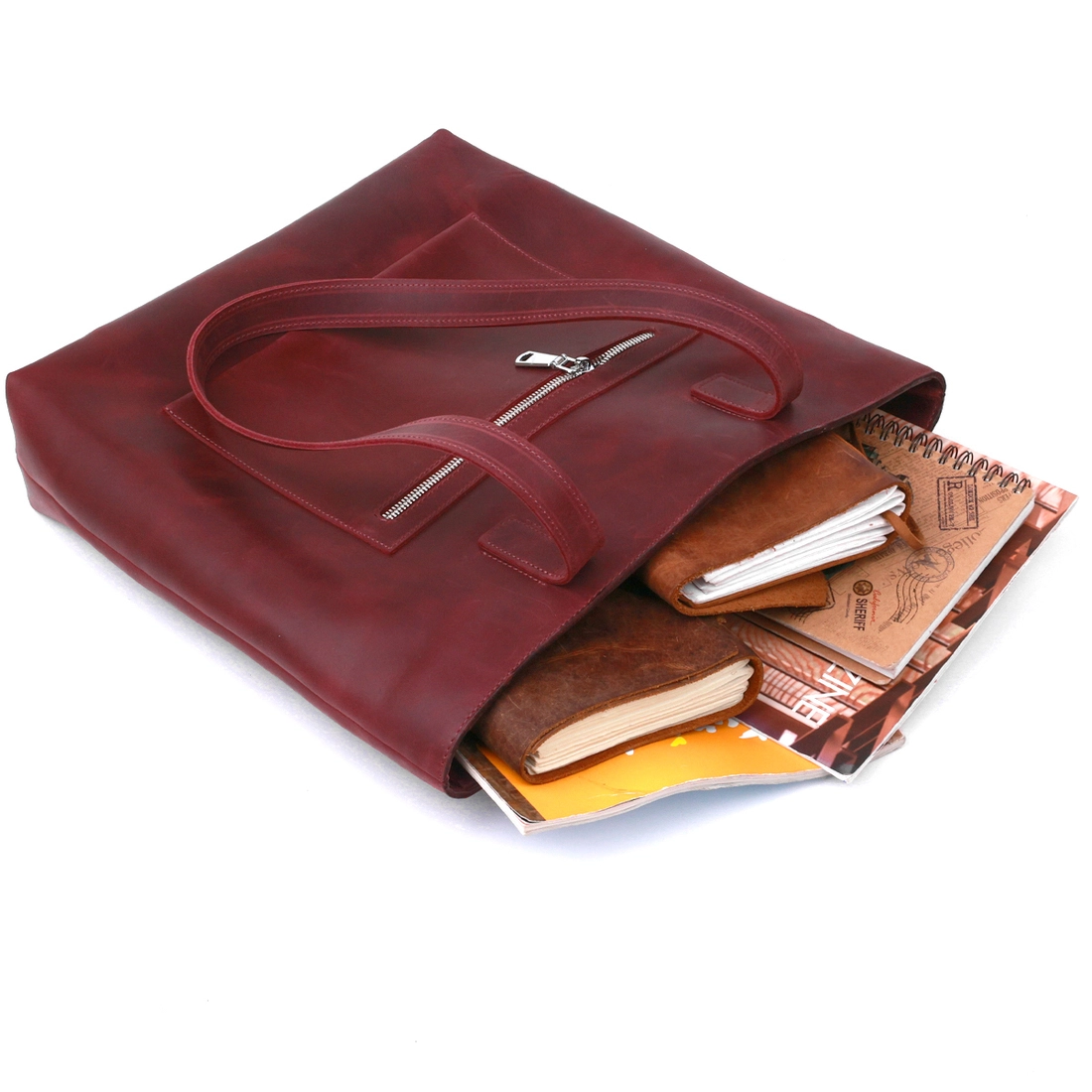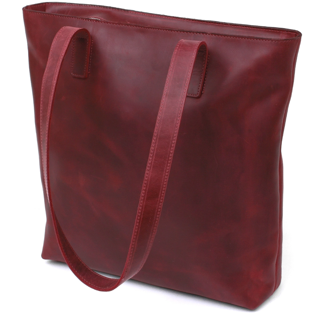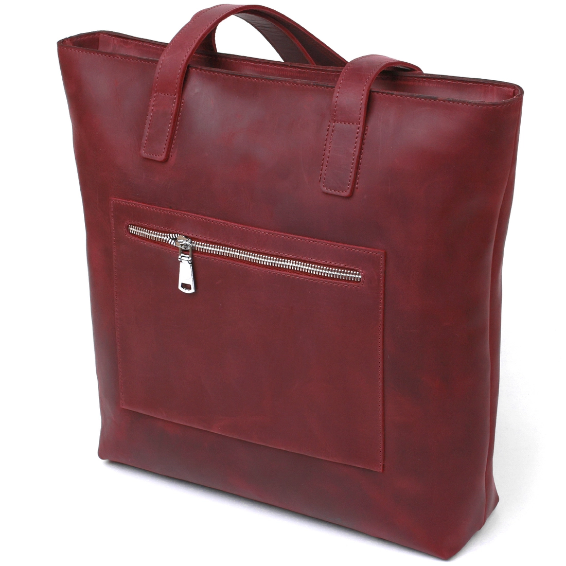 Стильная женская сумка-шоппер в изумительном красивом бордовом цвете и в матовой фактуре. Выполнена модель из натуральной кожи высокого качества и с отменными показателями стойкости к износу. Внутри есть одно вместительное отделение на молнии с потайным карманом, на внешней стороне также присутствует небольшой карман на молнии.