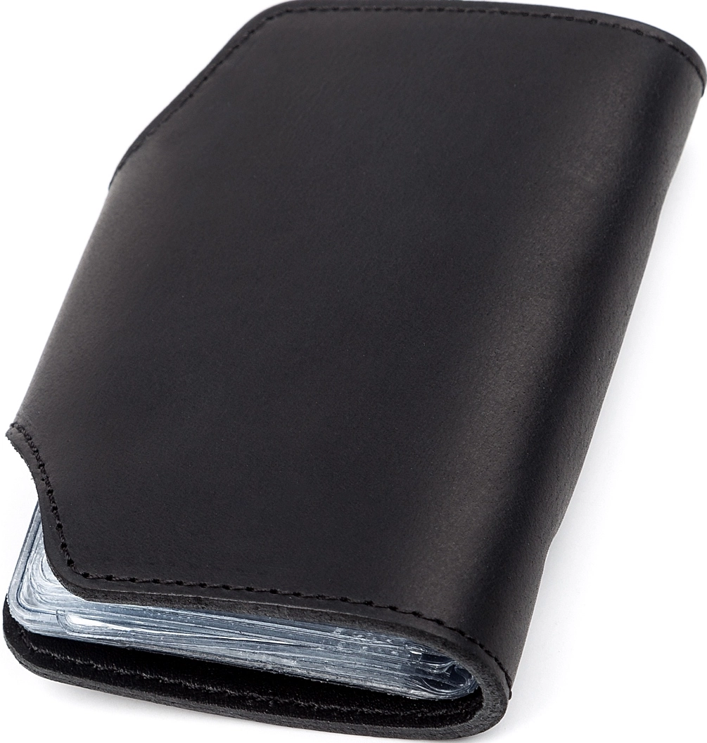 Добротная визитница из натуральной винтажной кожи особенностью, которой есть потертости и неоднородность окраса. Со временем кожа затирается и шлифуется, так что некоторые следы исчезнут сами собой. Аксессуар прошит прочной черной нитью, что отлично вписывается в дизайн и продлевает срок службы изделия.