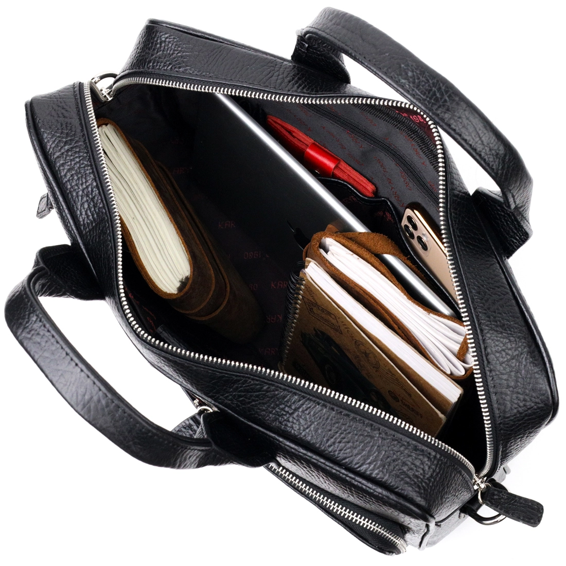 можно переносить в руке при помощи удобных кожаных ручек, а также