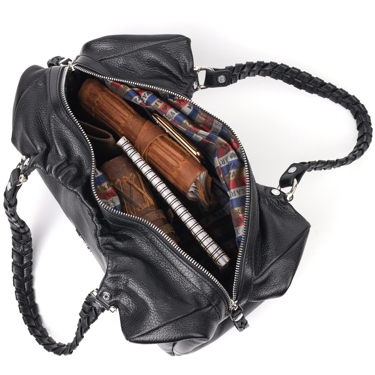 - две ручки с плетенной кожи для переноса в руках;