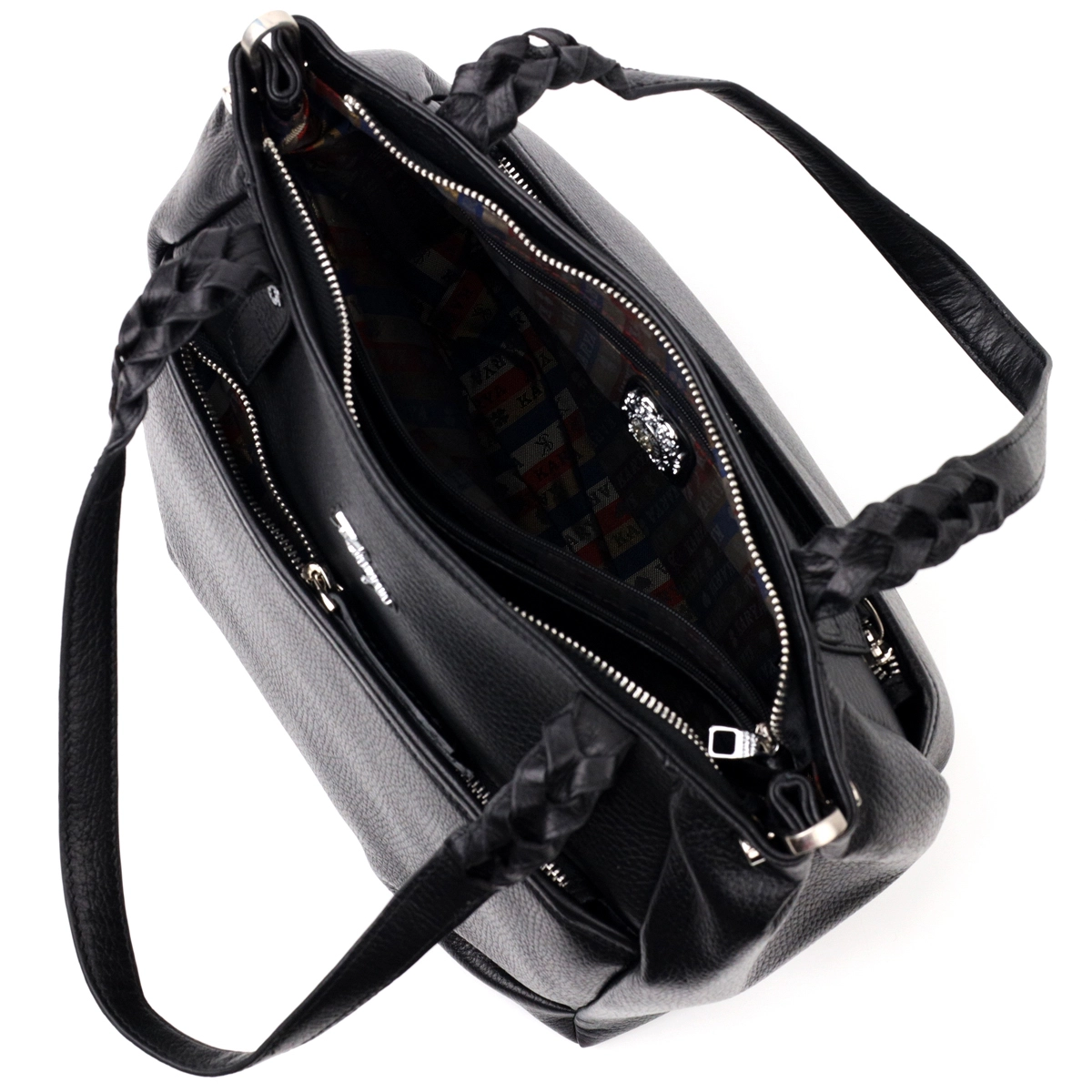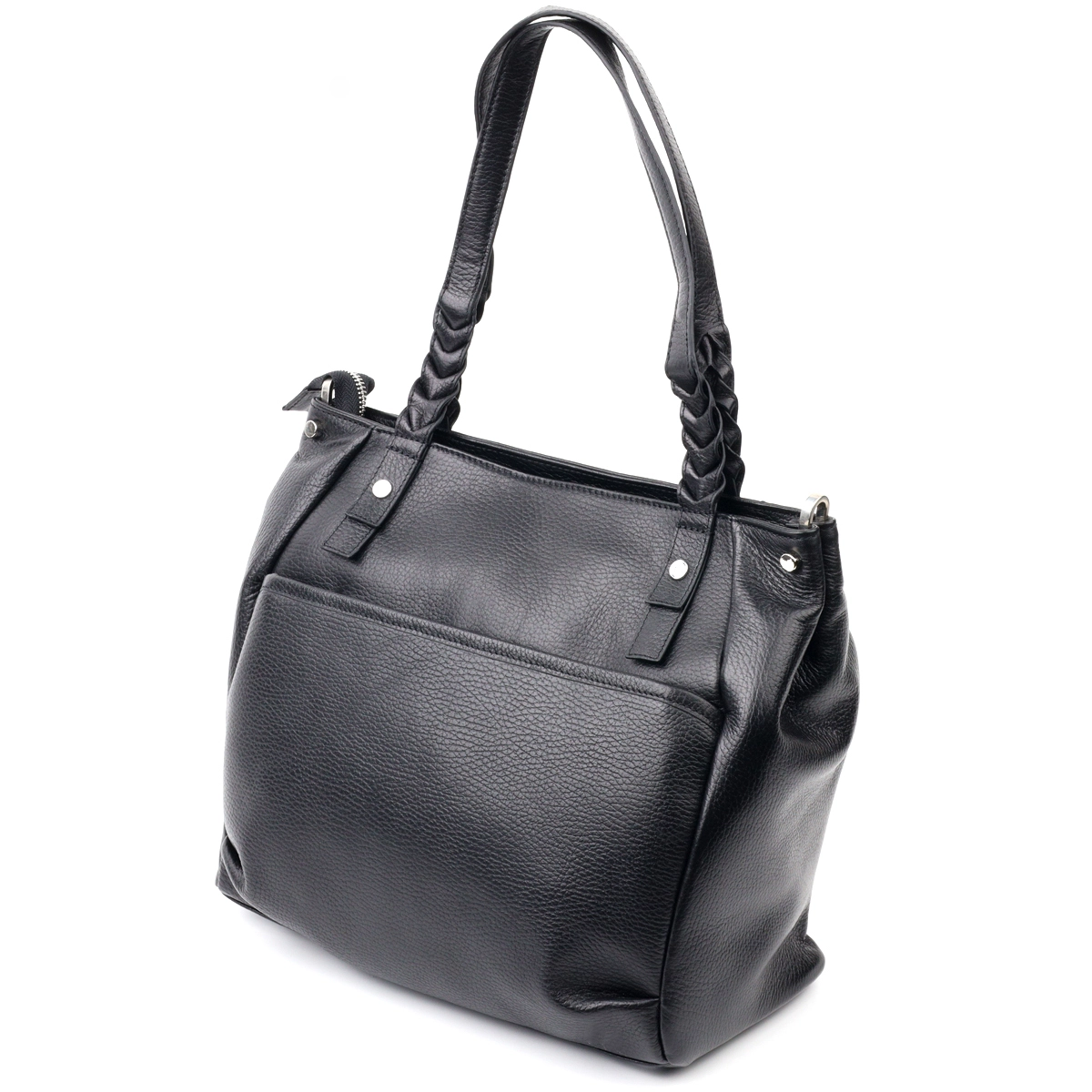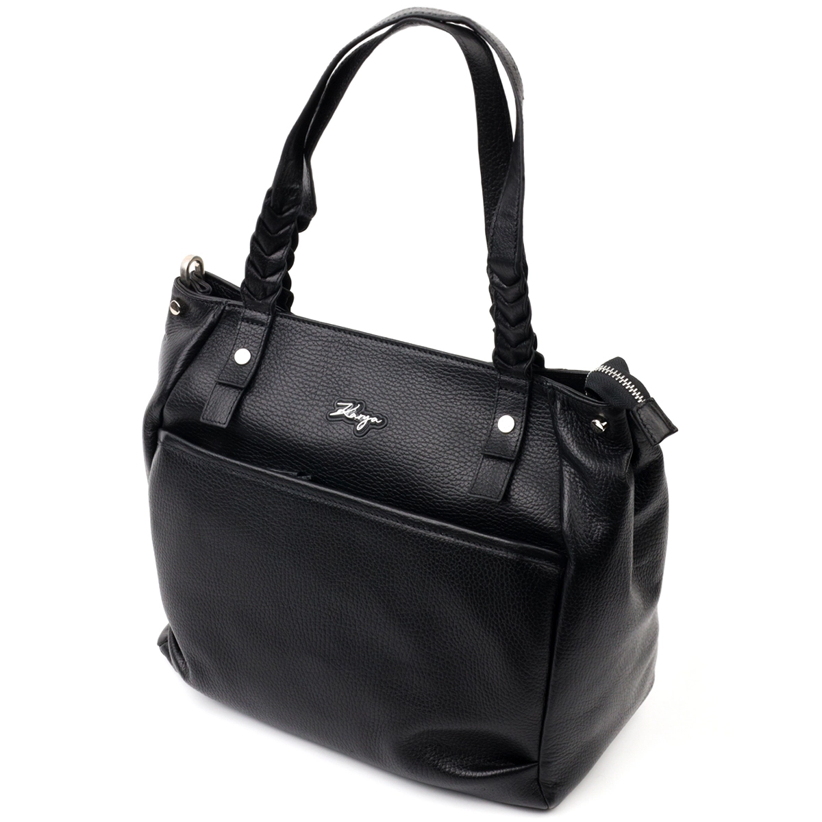 Вместительная женская сумка-шоппер из мелкозернистой натуральной кожи, в классическом черном цвете. Сумка функциональна и прочная, отличный вариант для ежедневного пользования. В изделии использована качественная фурнитура, которая не только дополняет стильный дизайн сумки, но и защищает изделие. Шоппер имеет прочную подкладку. Аксессуар упакован в фирменный текстильный мешок Karya. Сумка из натуральной кожи всегда будет отличным подарком любой женщине.