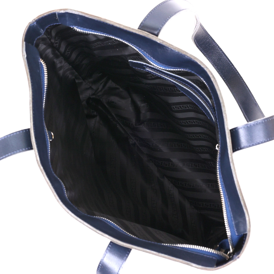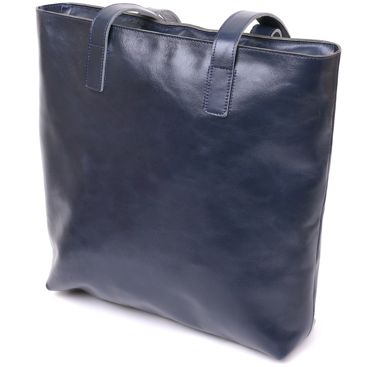 Вместительная сумка-шоппер в современном и модном дизайне от украинского производителя. Материал изготовления – натуральная кожа высокого качества с отменными эксплуатационными показателями. Закрывается сумка на молнию, внутри одно просторное отделение и потайной карман. Цвет – синий с отливом, что смотрится очень красиво и стильно, фактура – гладкая.