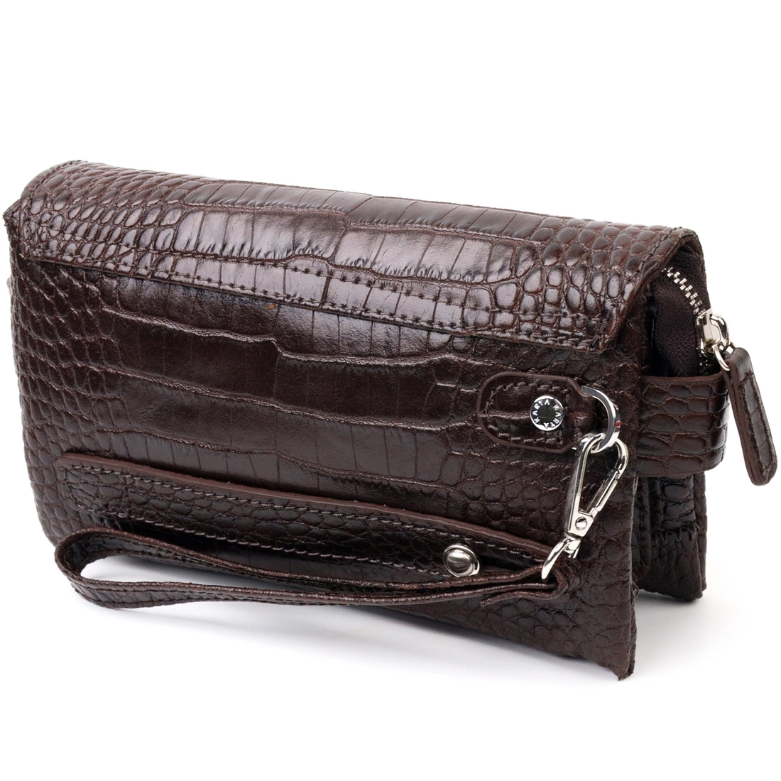 - снаружи на тыльной стороне мужского клатча расположена ручка для
