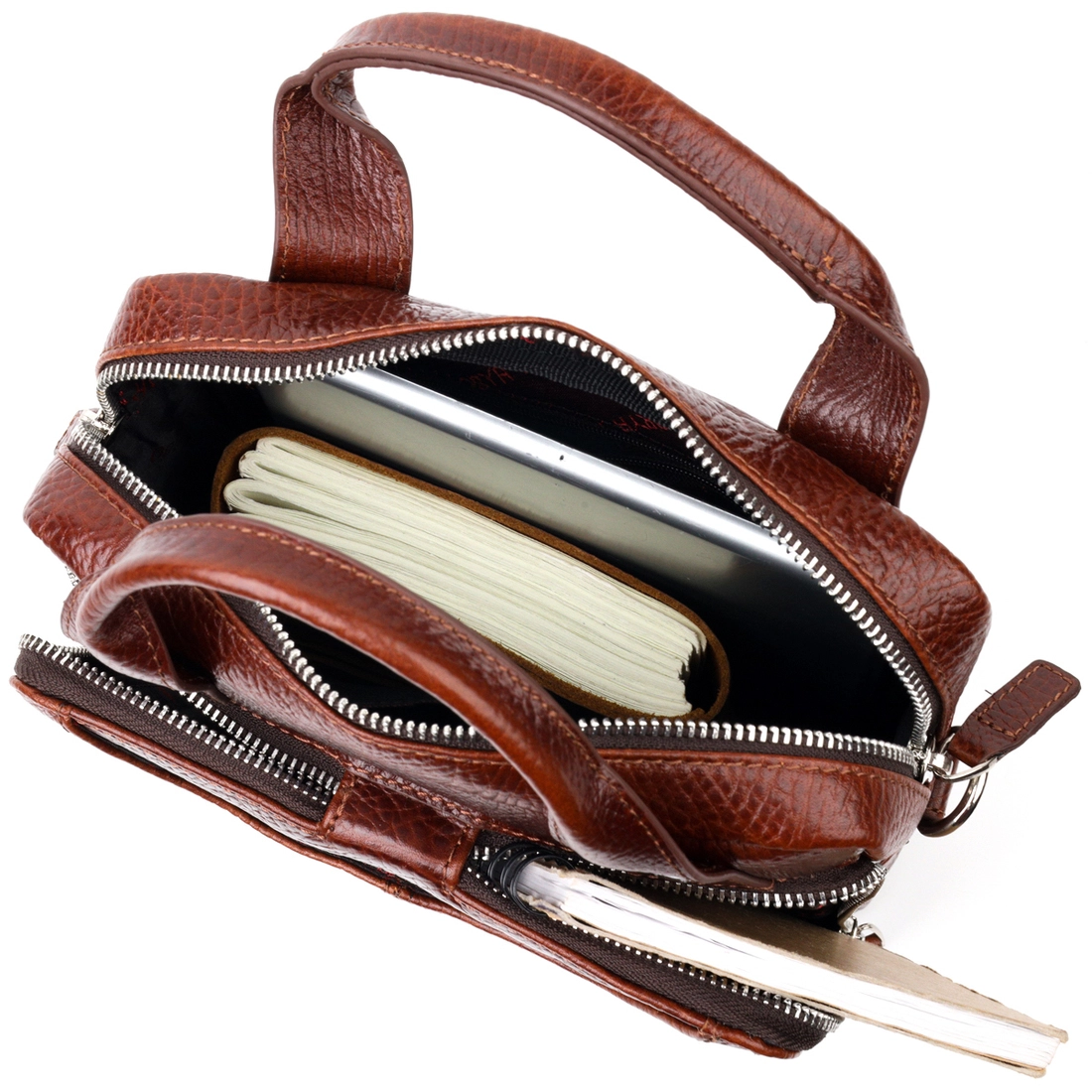Мужская сумка коричневого цвета из натуральной зернистой кожи